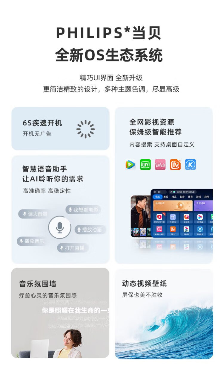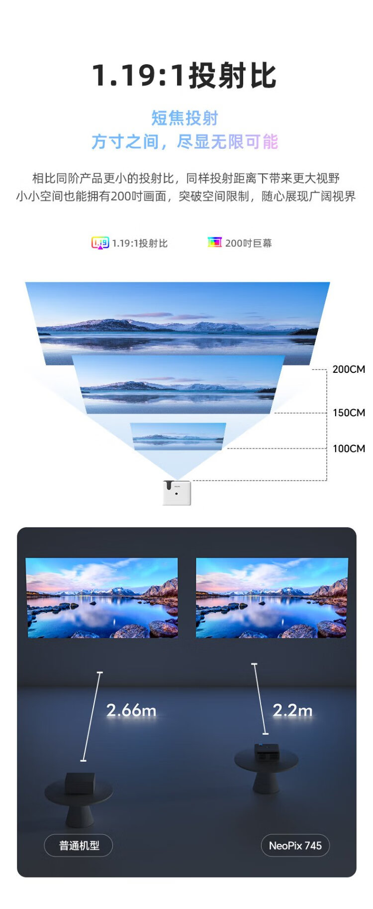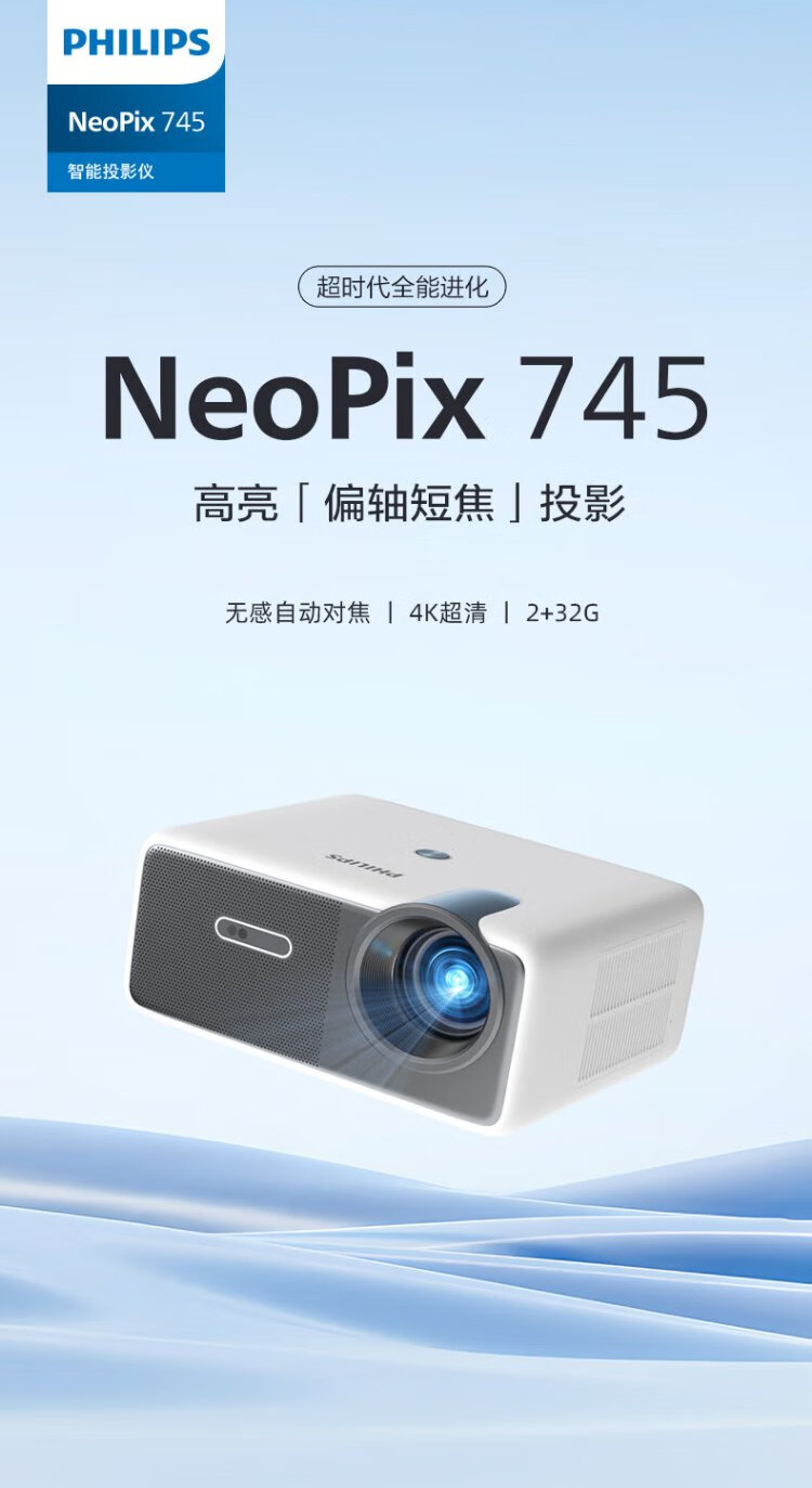 Philips (PHILIPS) NeoPix 745 projector for home use, office training, game projector, smart home theater TV (sensorless autofocus, ultra-clear and bright direct projection)