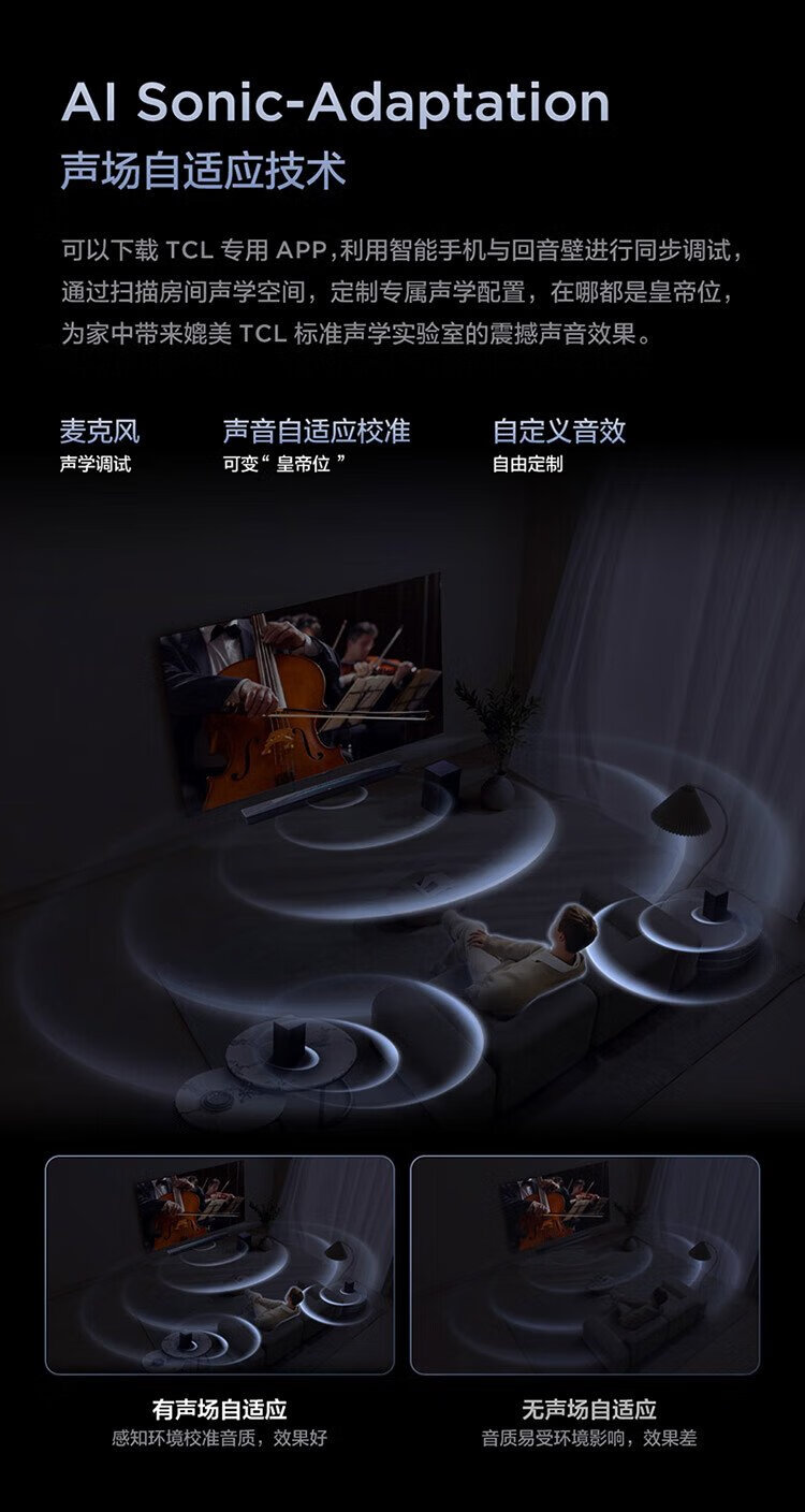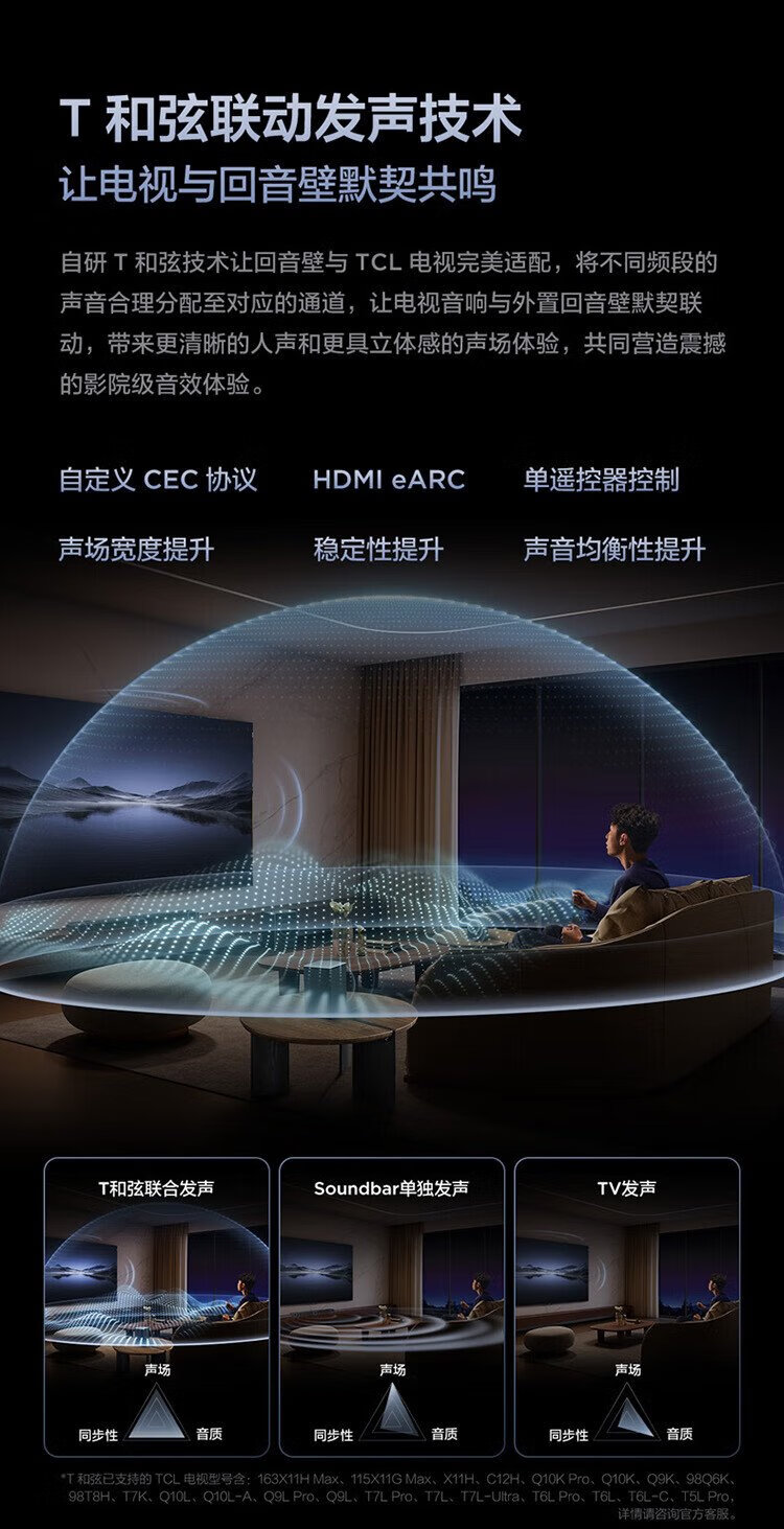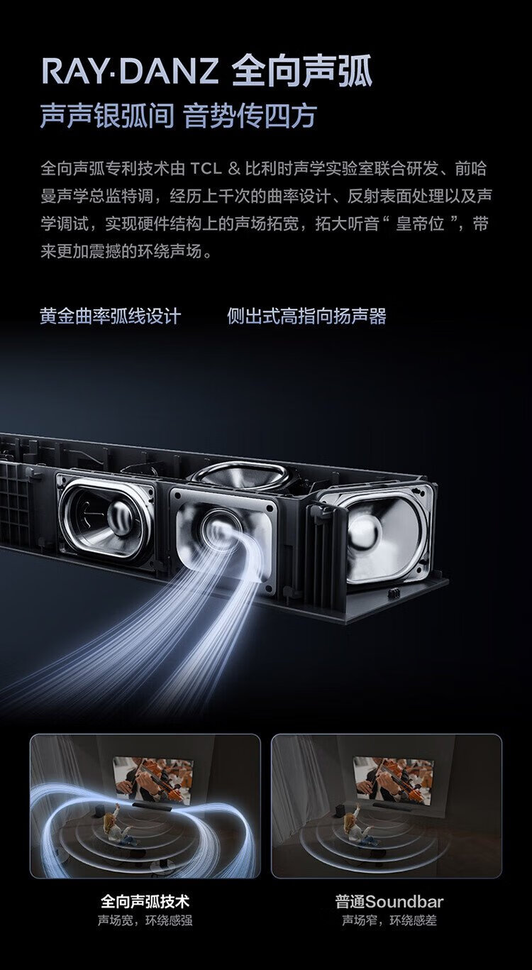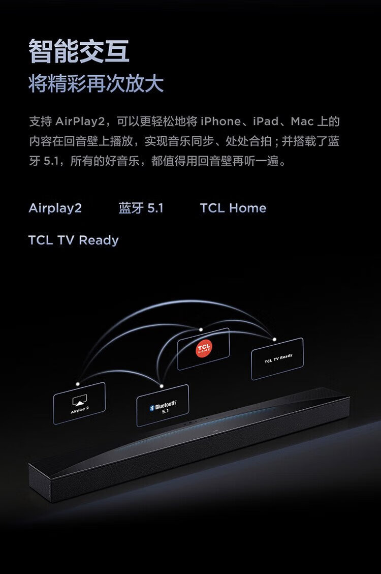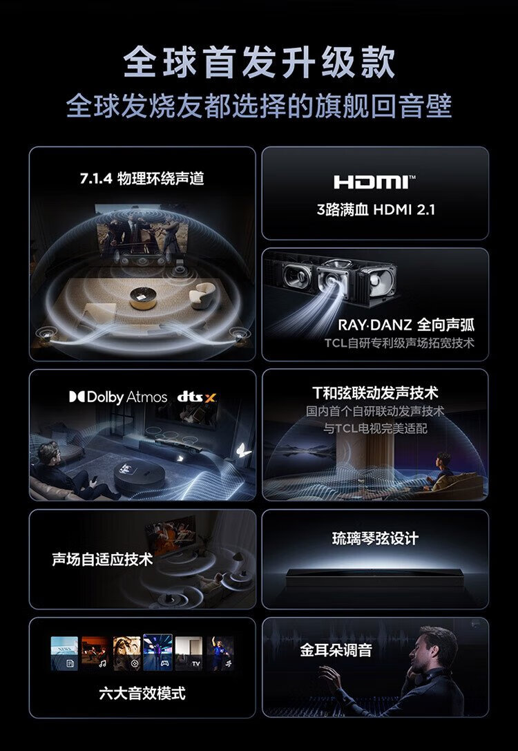TCL Sound Wall Q85H Pro 7.1.4 Physical Surround Channel Omnidirectional Sound Arc HDMI2.1 T Chord Dolby Atmos DTS X Subwoofer Bluetooth Smart Speaker