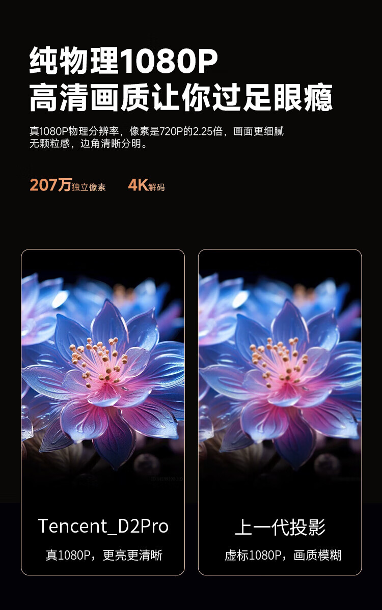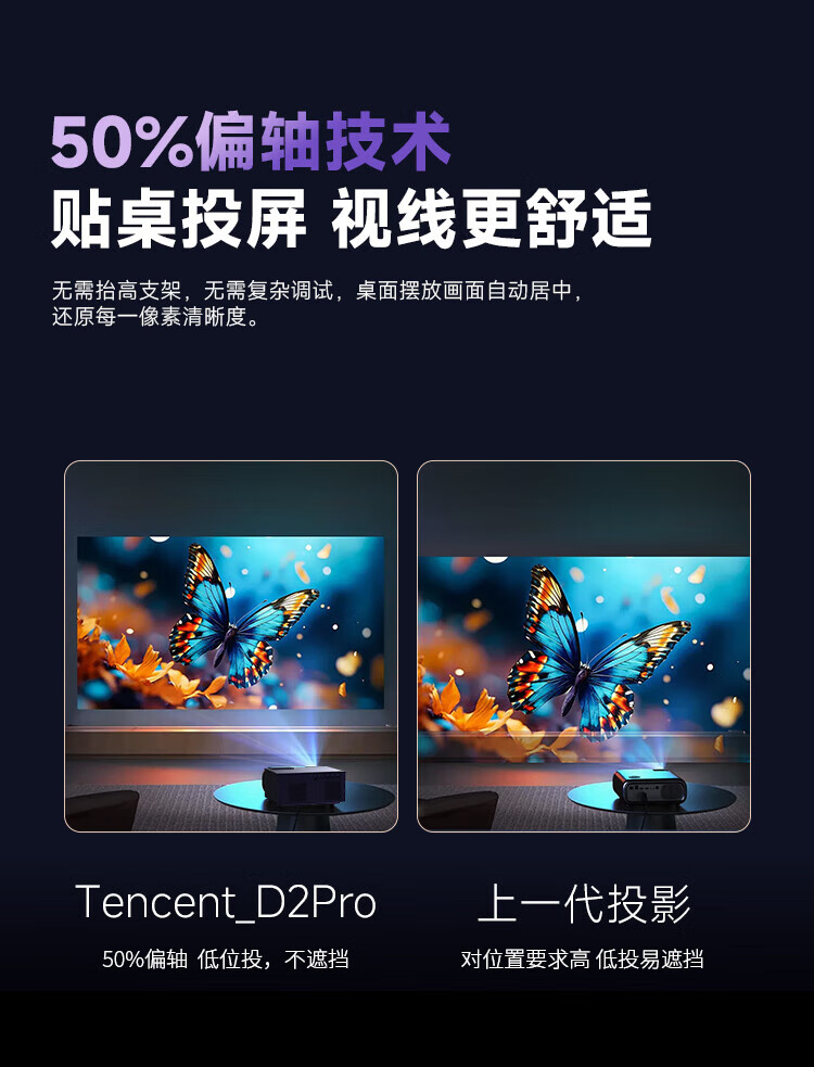 Tencent Aurora Projection D2Pro projector home office conference projector smart home theater (782CVIA 1.19 throw ratio 50% off-axis, supports B&B hotel customization)