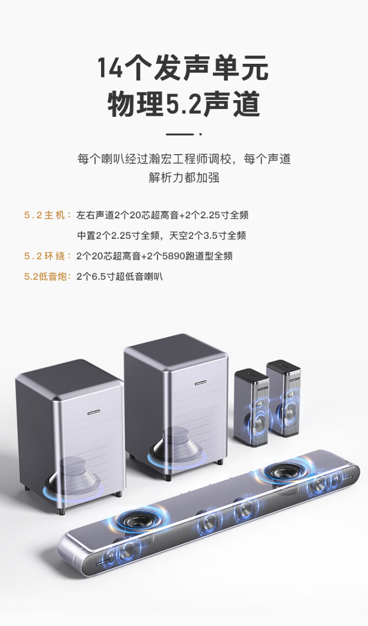 Hanhong Audio National Subsidy 069DB TV Audio Echo Wall Dolby Home Theater Audio Set 5.2 Channel Living Room Home TV Projector High Power Double Subwoofer
