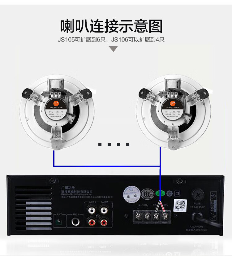 HiVi AT80A+JS106*8 home theater constant pressure ceiling speaker ceiling audio amplifier 5.25-inch conference cafe background music public address system