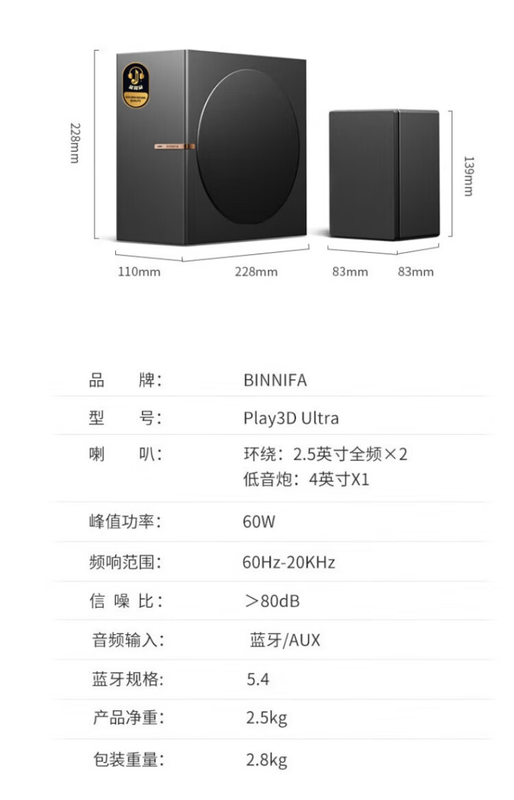 BINNIFA audio Bluetooth speaker all wood sound subwoofer home theater mini audio wireless Bluetooth 2.1 channel computer audio game office