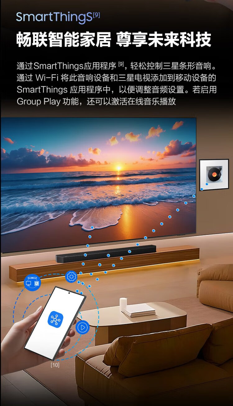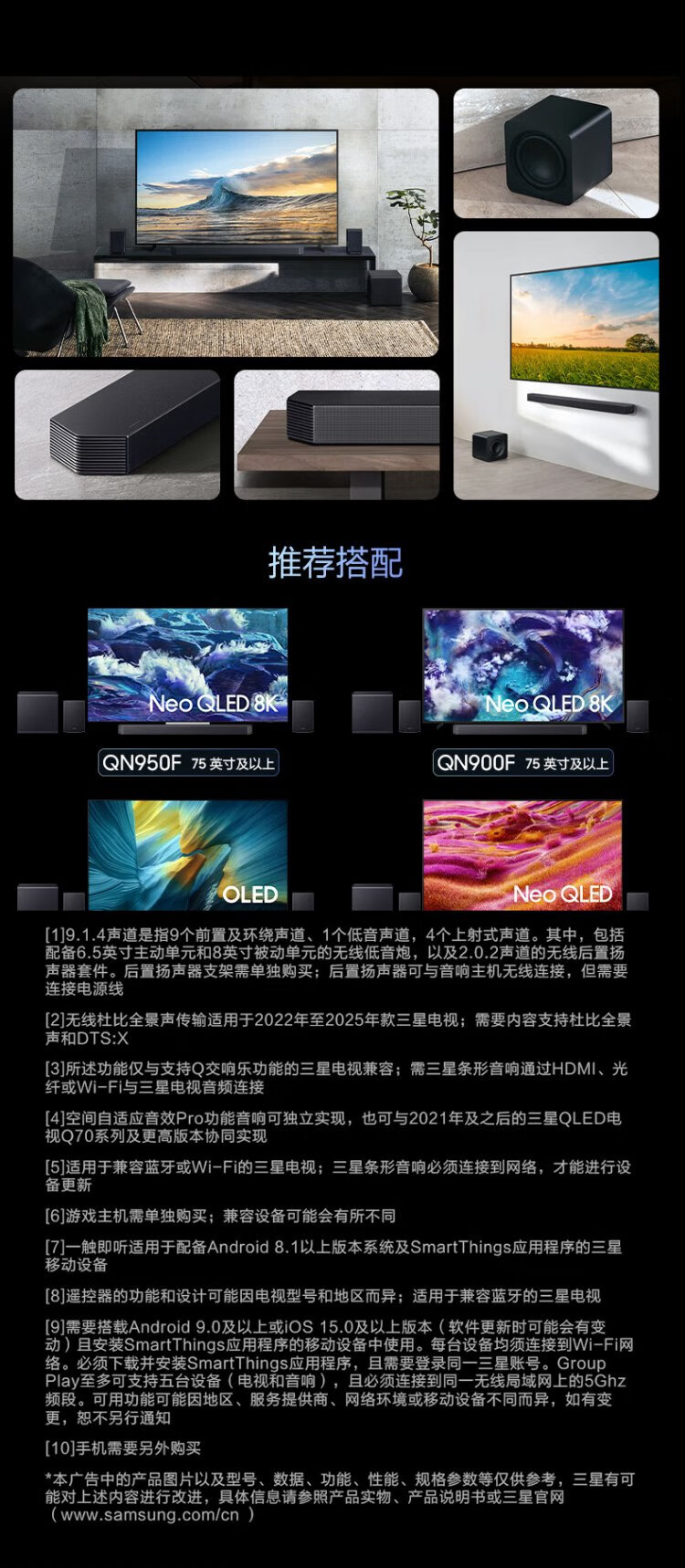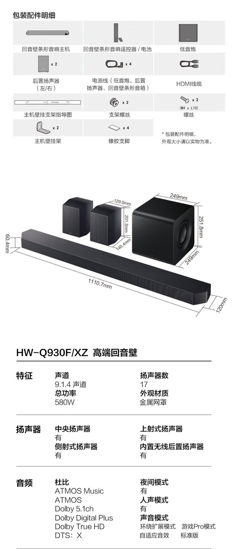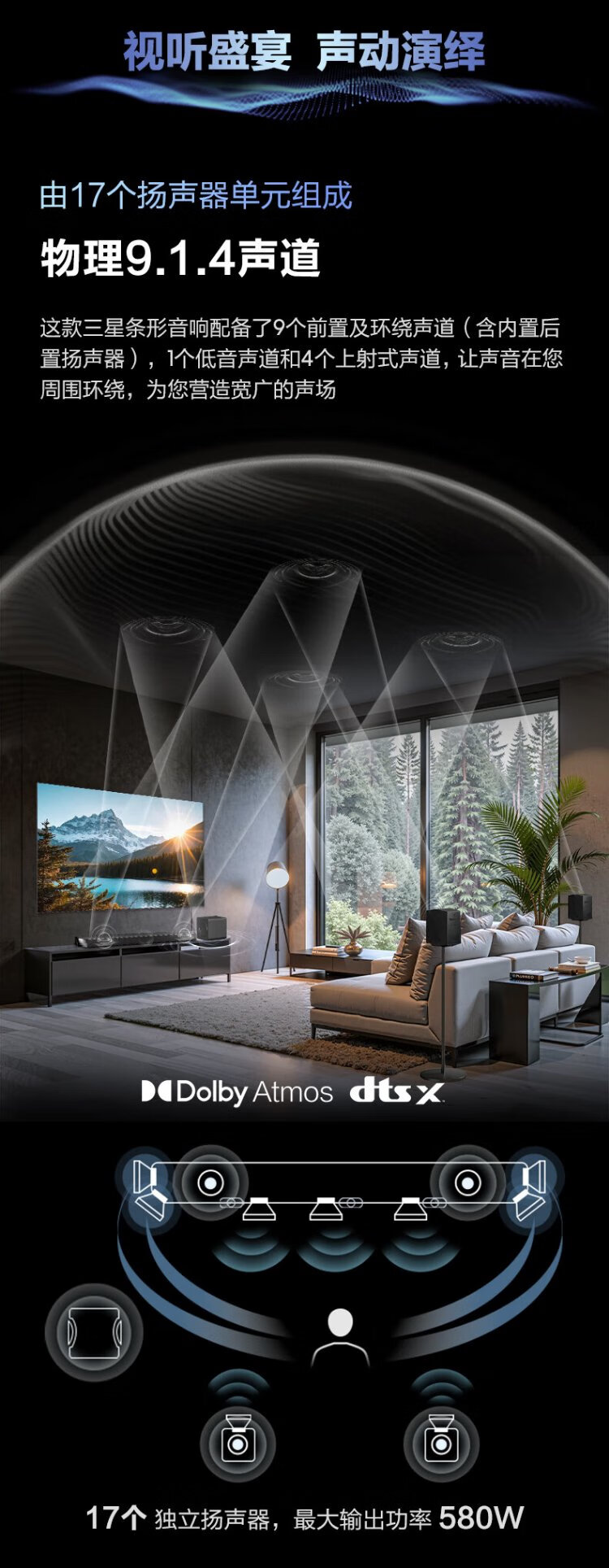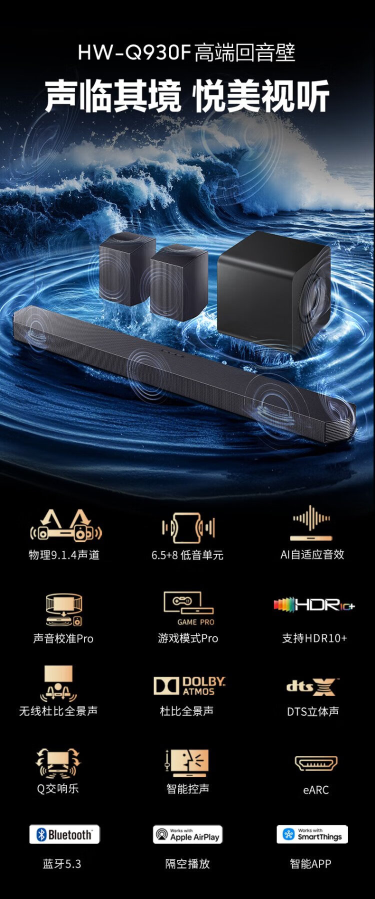 Samsung (SAMSUNG) HW-Q930F/XZ Dolby Atmos 9.1.4 channel DTS-X sound bar wireless surround subwoofer TV projector game audio intelligent APP control