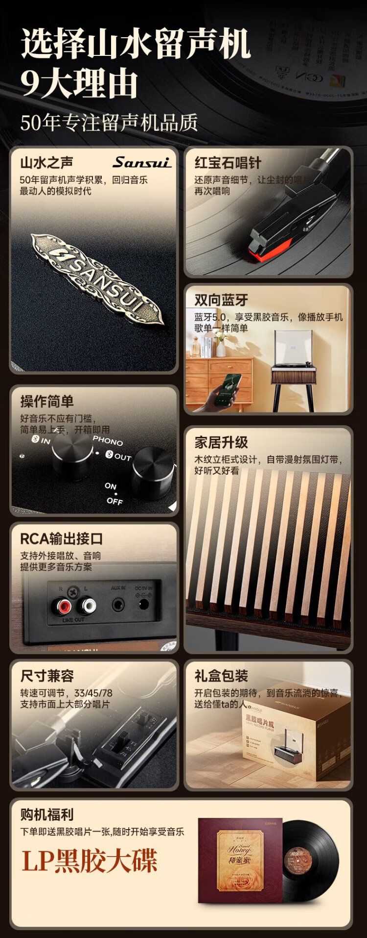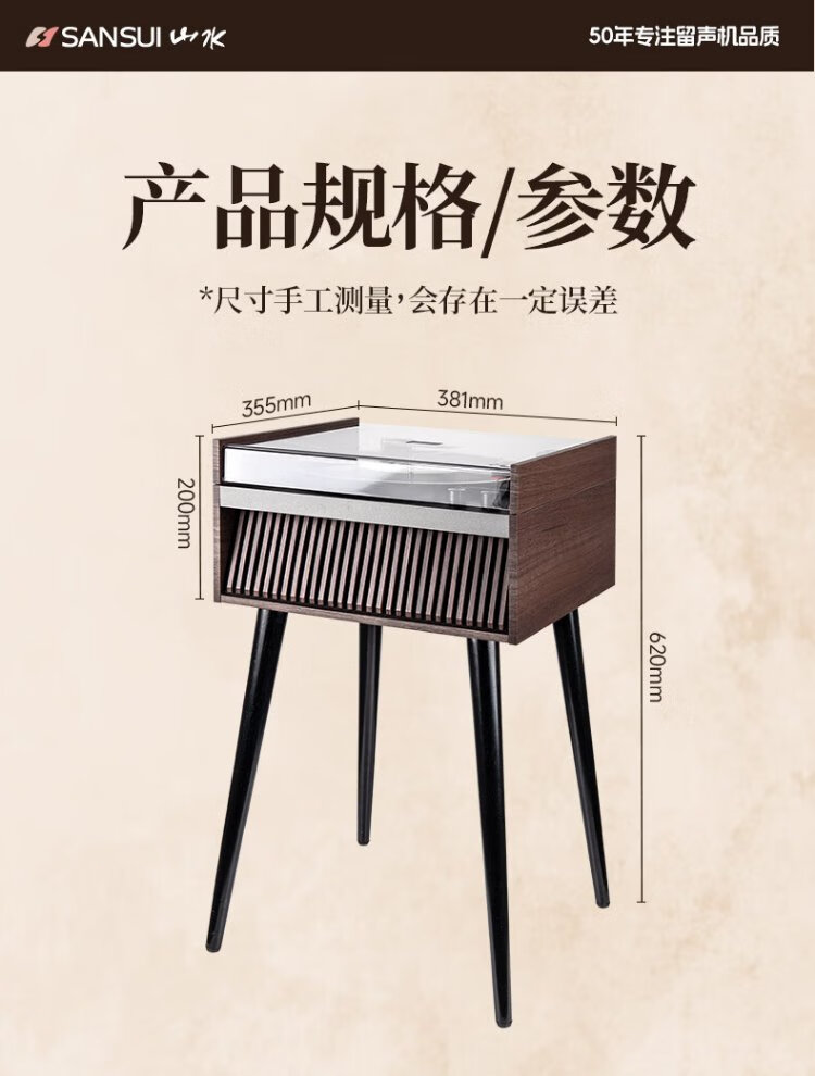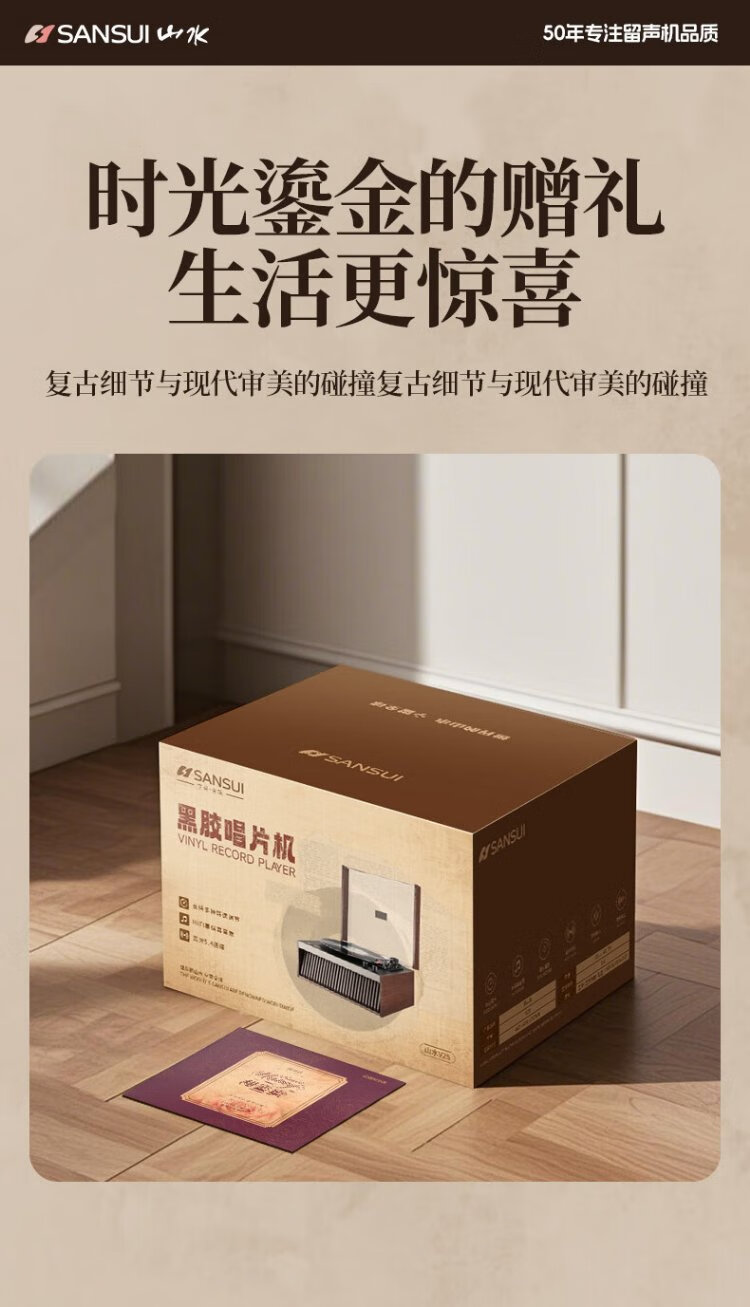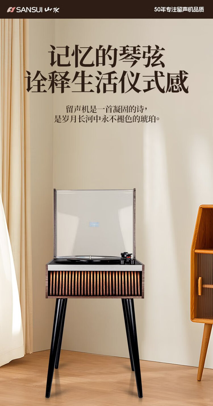 SANSUI vinyl record player, integrated retro gramophone, upright bluetooth film record player, nostalgic living room ornaments, birthday gift V25 Sweet Honey