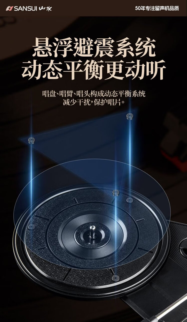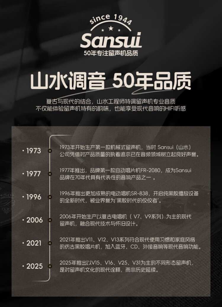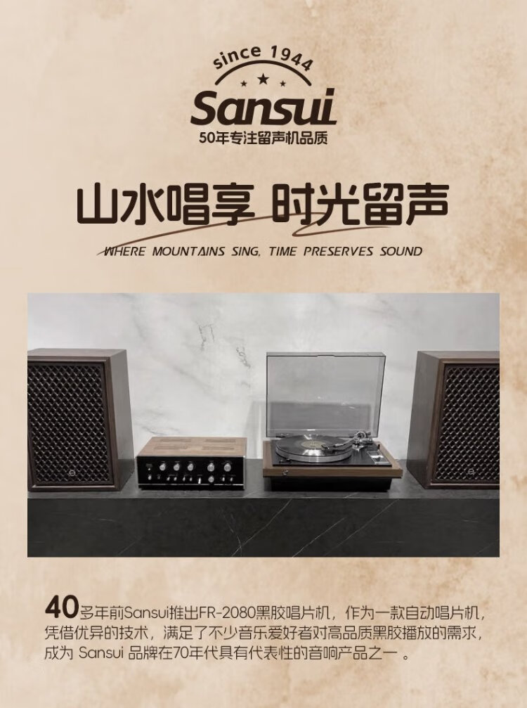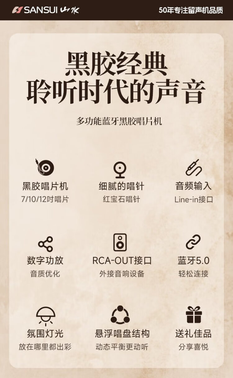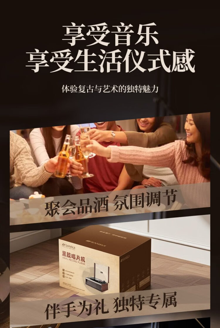 SANSUI vinyl record player, integrated retro gramophone, upright bluetooth film record player, nostalgic living room ornaments, birthday gift V25 Sweet Honey