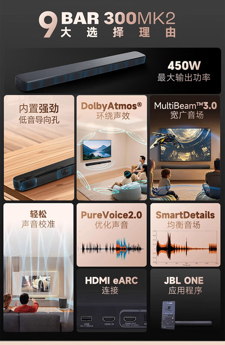 JBL New Product Upgrade BAR 300MK2 Compact Sound Bar TV Speaker 5.0 Virtual Dolby Atmos Home Theater Soundbar Wireless Computer Speaker