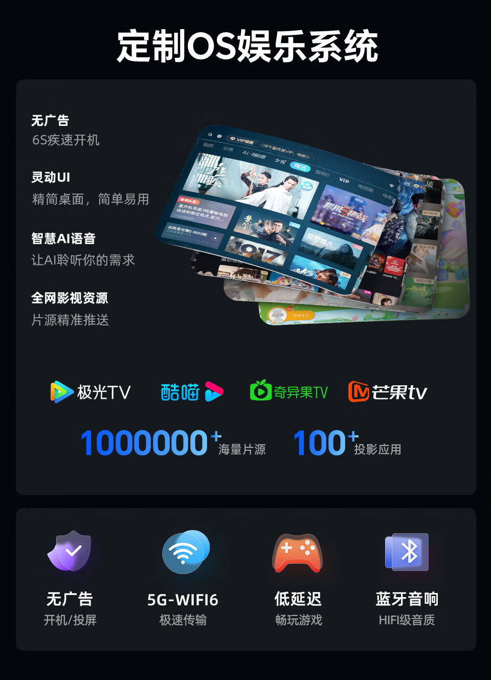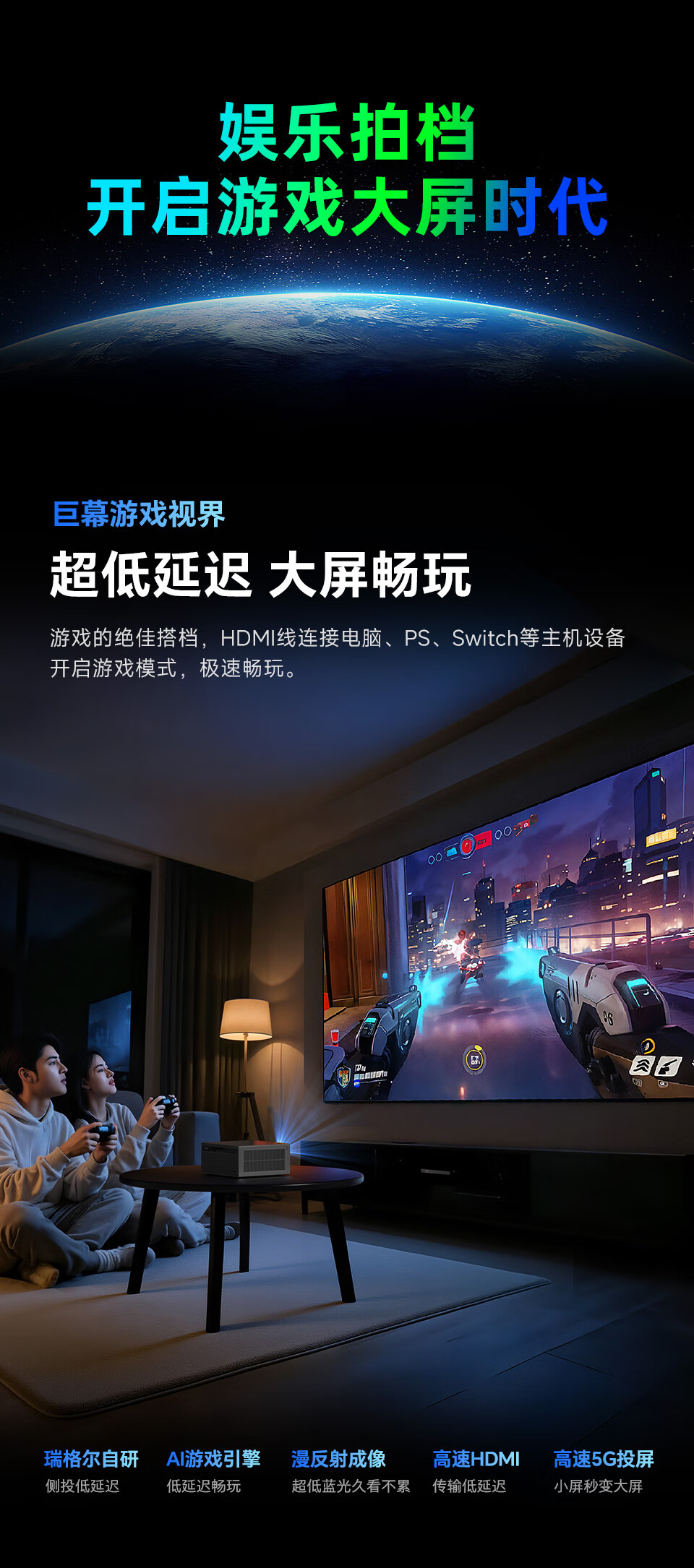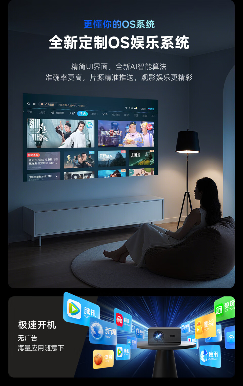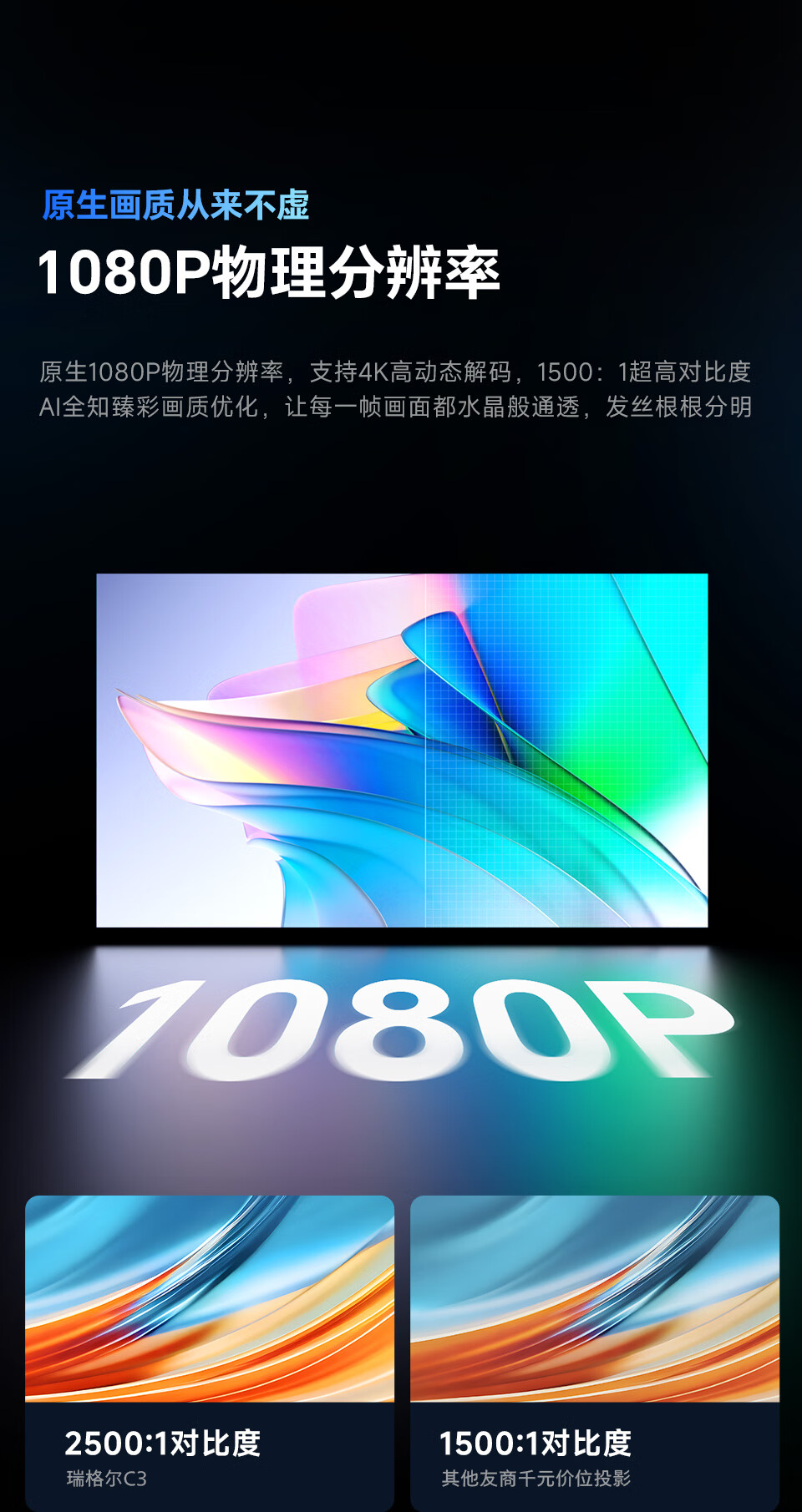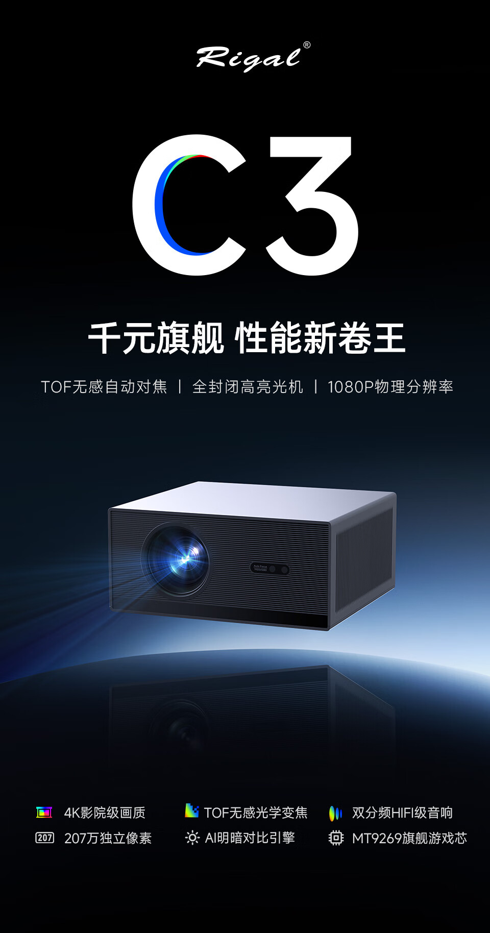 Rigal C3 projector home smart home theater TV office training mobile phone projector (TOF sensorless autofocus 1080P ultra-clear and bright)