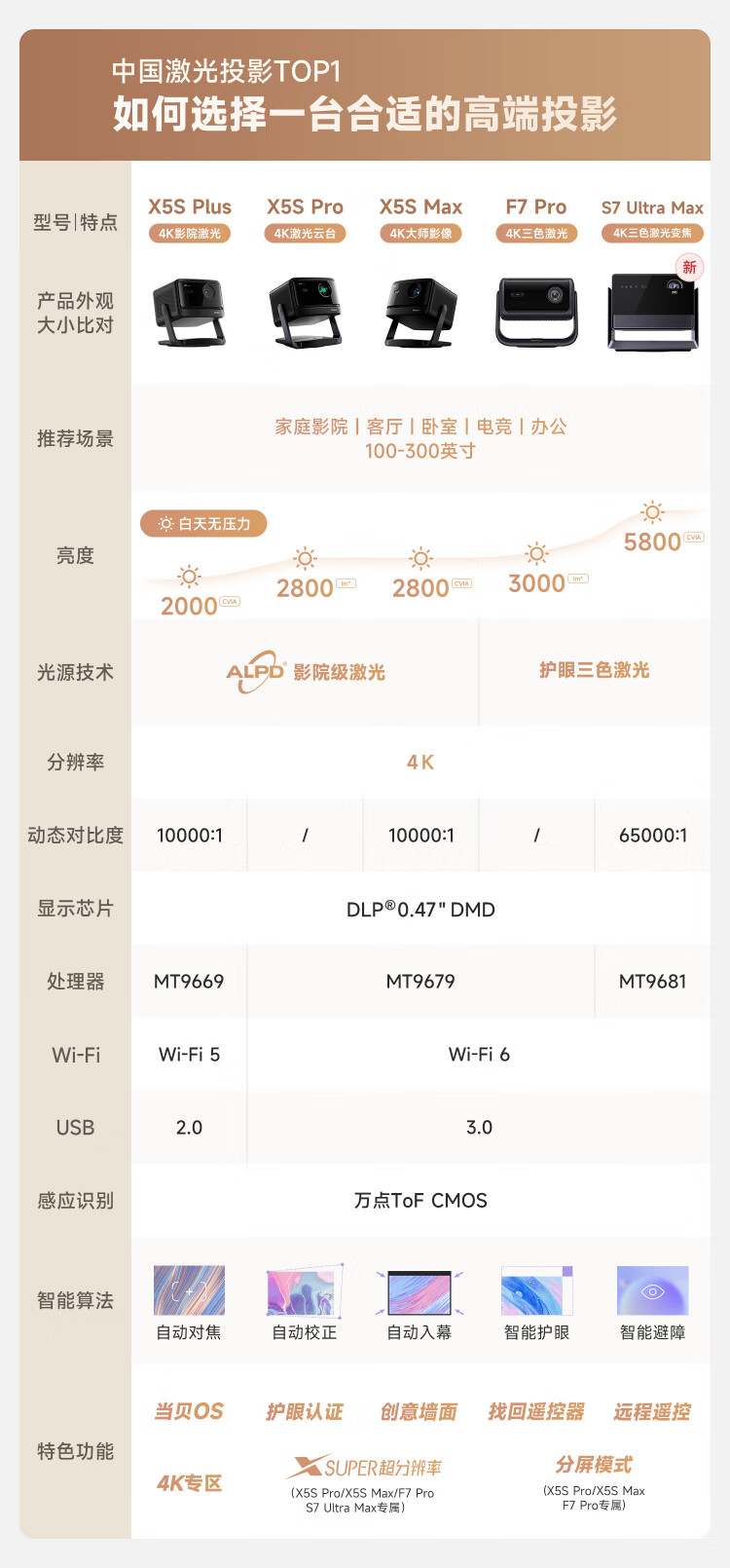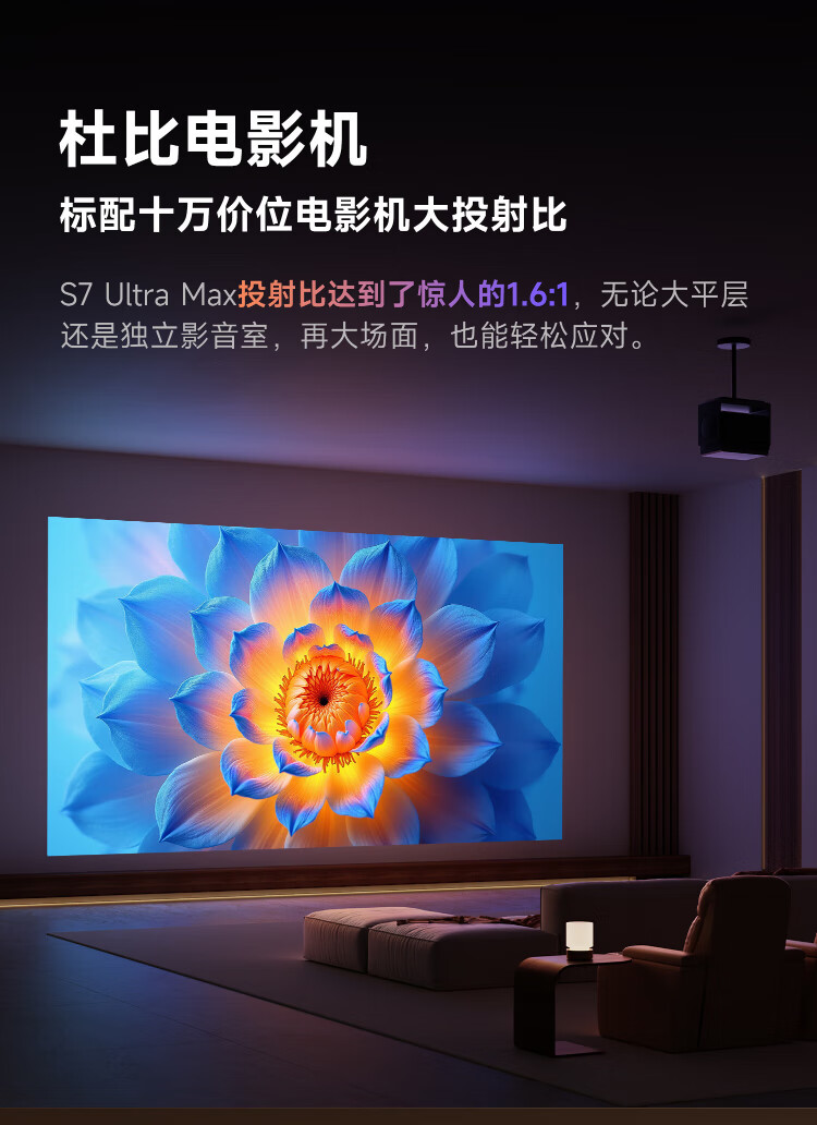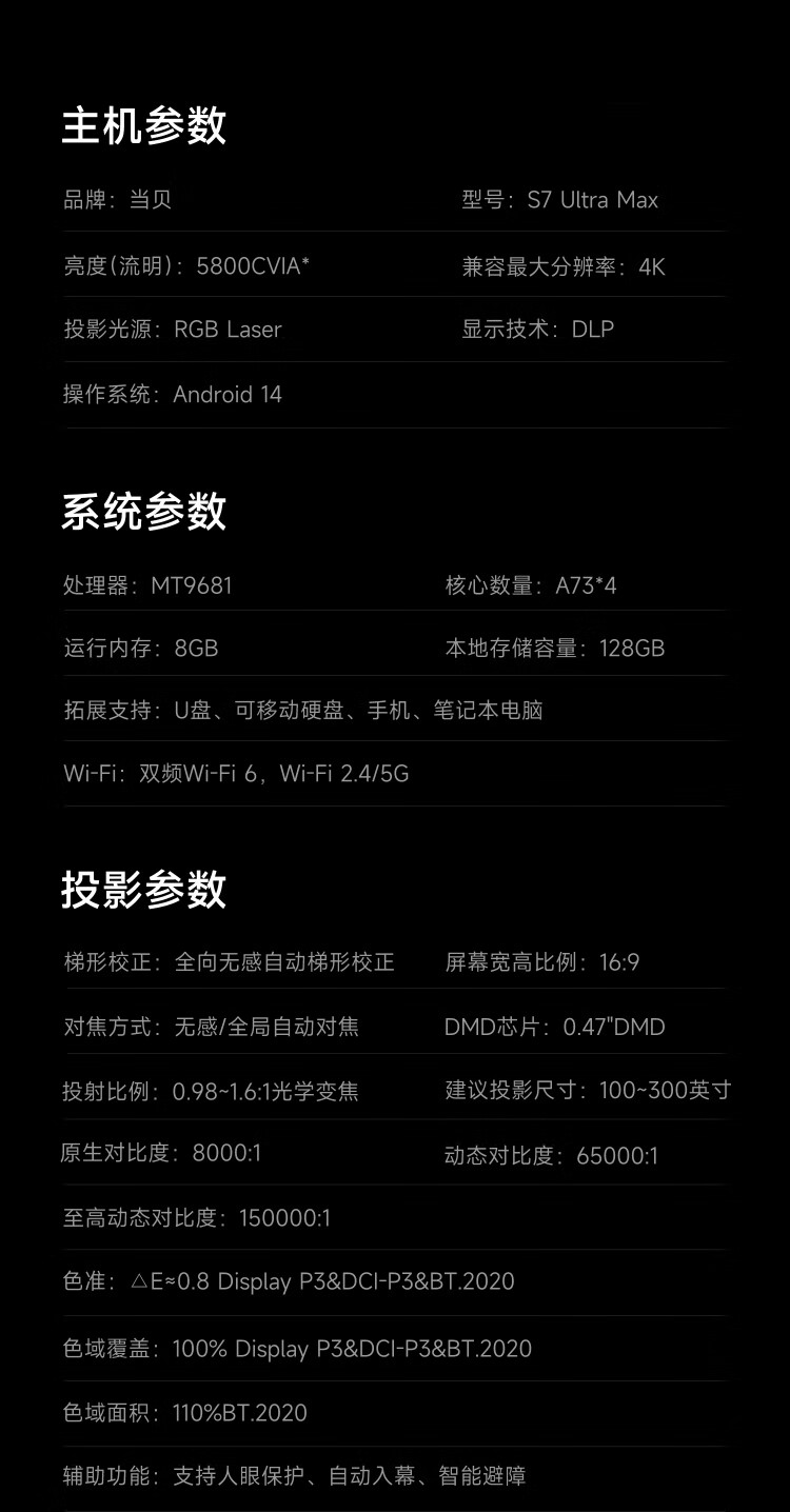 Dangbei S7 Ultra Max projector home 4K new three-color laser zoom ultra-clear home theater national subsidy 20% (5800CVIA first liquid cooling)