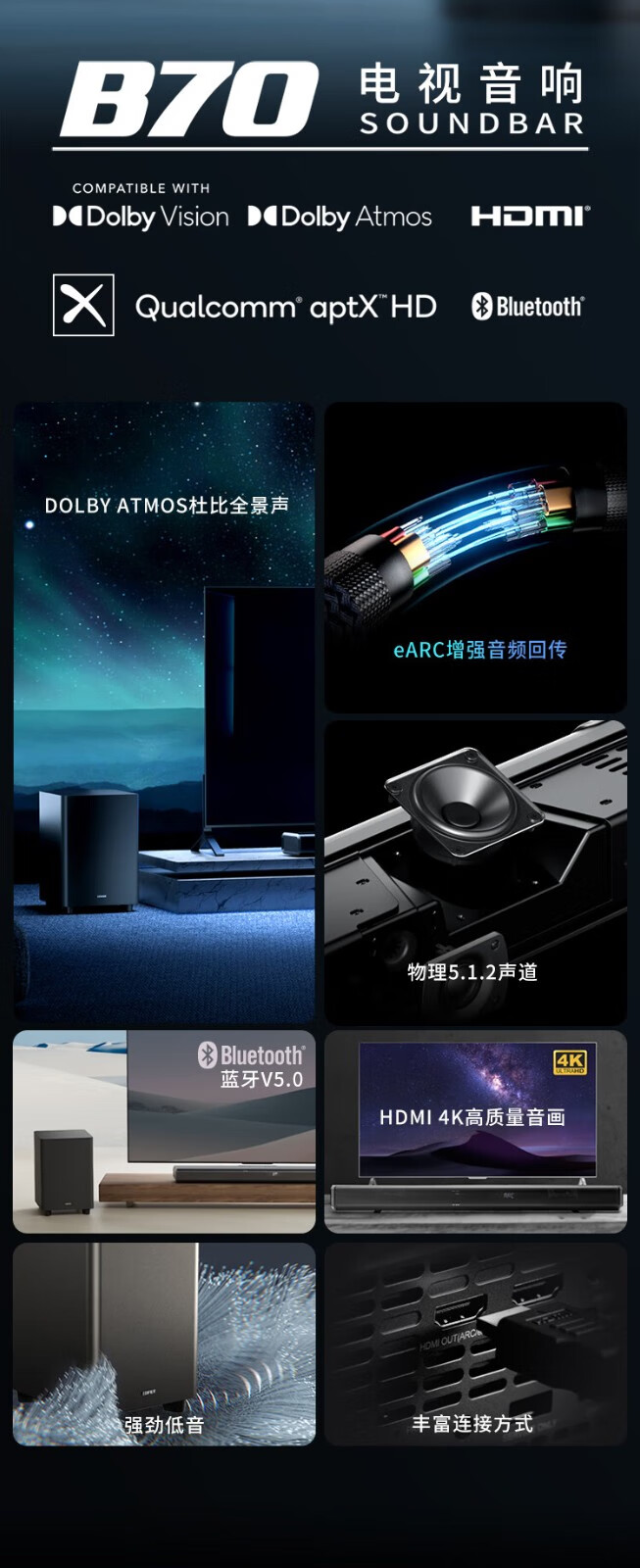 Edifier (EDIFIER) B70 TV audio Dolby Atmos wireless Bluetooth sound bar home theater wireless subwoofer living room audio Dolby Atmos sound bar + subwoofer
