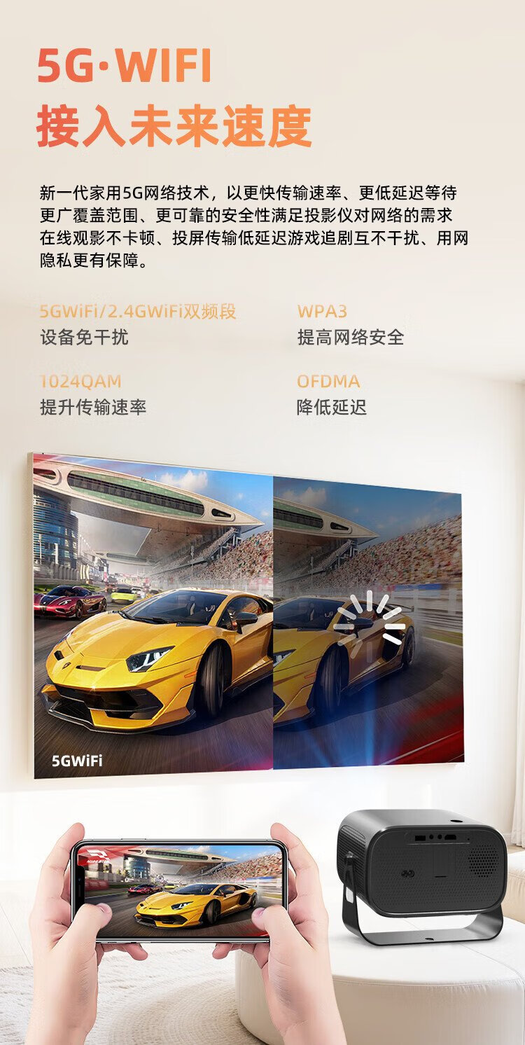 Aet2025 new projector home high-definition white wall direct projection small portable 4K projector mobile phone screen fully automatic focus smart bedroom home theater Q1-A autofocus flagship version supports 4K high-definition autofocus