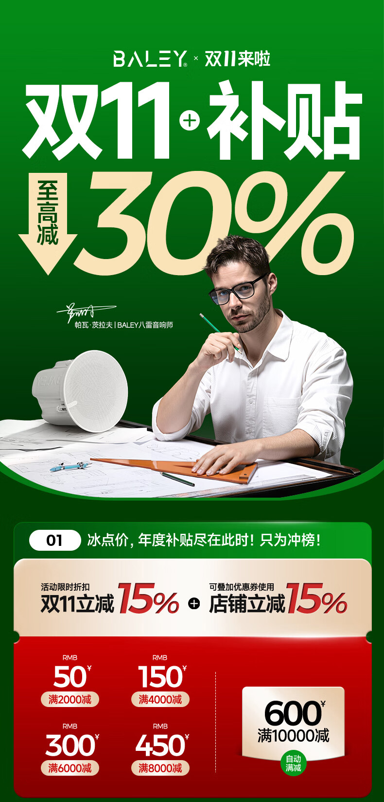 八雷(BALEY) 家庭影院音响天龙功放套装家用客厅电视投影环绕音重低音箱吸顶音响嵌入式蓝牙吸顶音箱 16【天龙5.2功放+J6×5+低音炮】全套