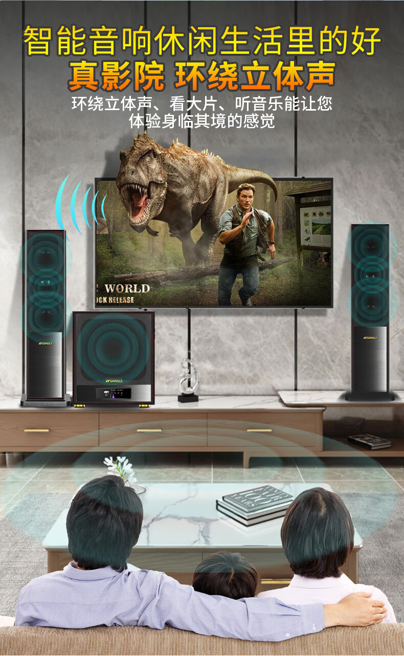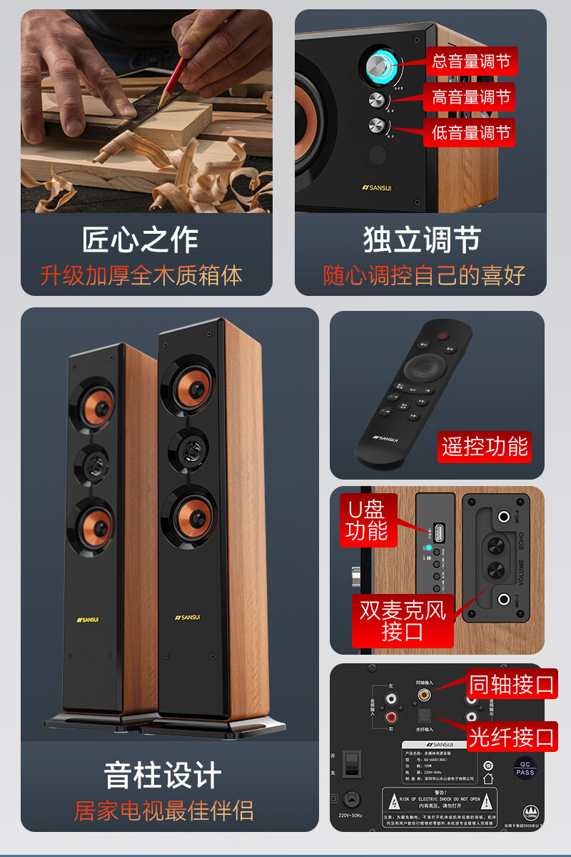 SANSUI 60C Living Room Karaoke TV Audio Home Subwoofer Home Karaoke Bluetooth Singing Speaker Set Computer Desktop Surround Sound HIFI Fever Level 60C Upgraded Heightened Version + Wired Microphone
