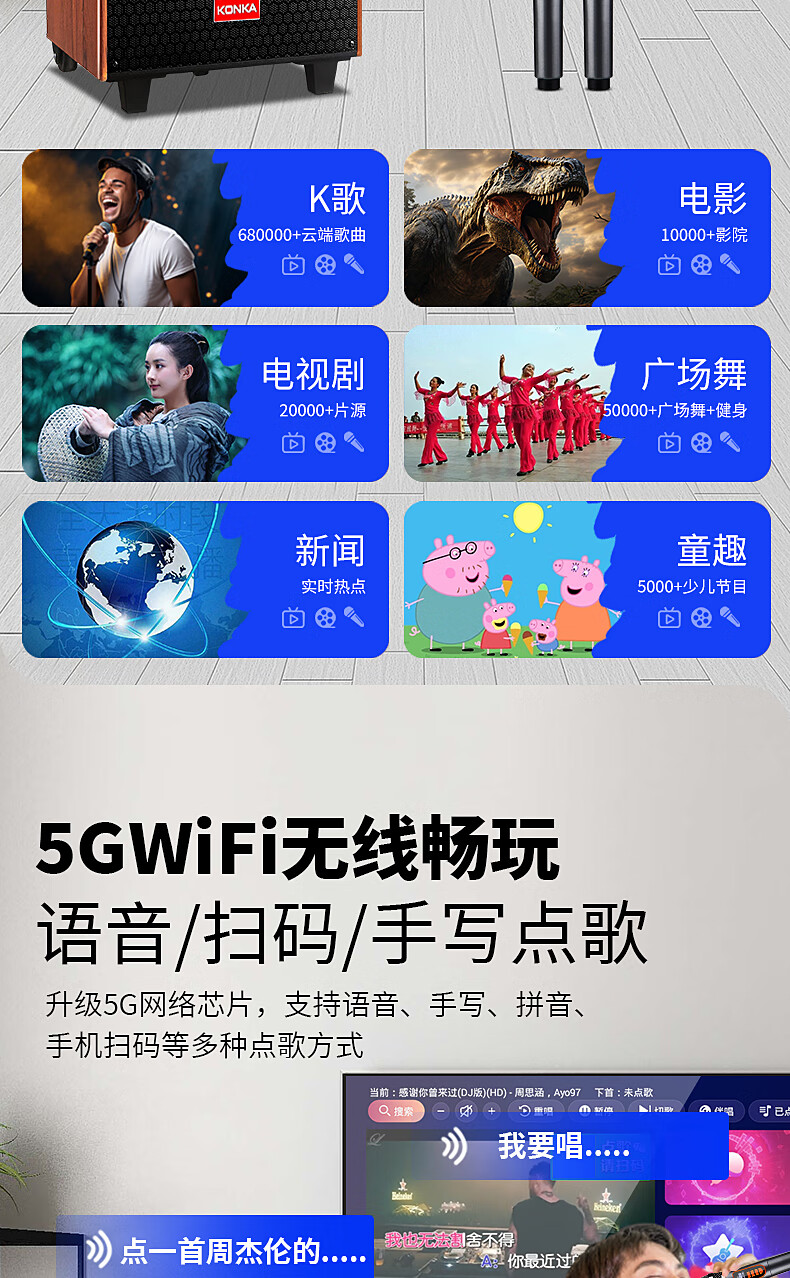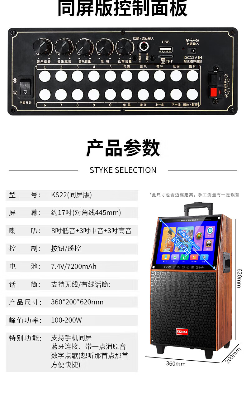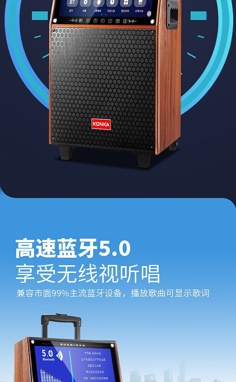 KONKA square dance audio with display screen outdoor audio karaoke all-in-one trolley speaker mobile Bluetooth home KTV audio karaoke machine high volume 20-inch Bluetooth version without microphone