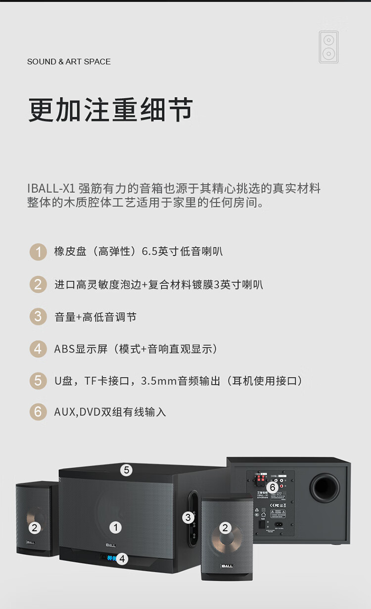 IBALL Home Computer TV Wireless Bluetooth Audio Desktop Desktop Subwoofer Wooden High Power High Quality 2.1 Speaker Impact 20th Anniversary Edition X1 Classic Black No U Disk