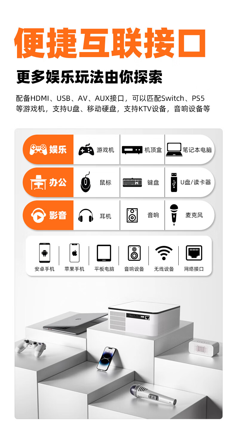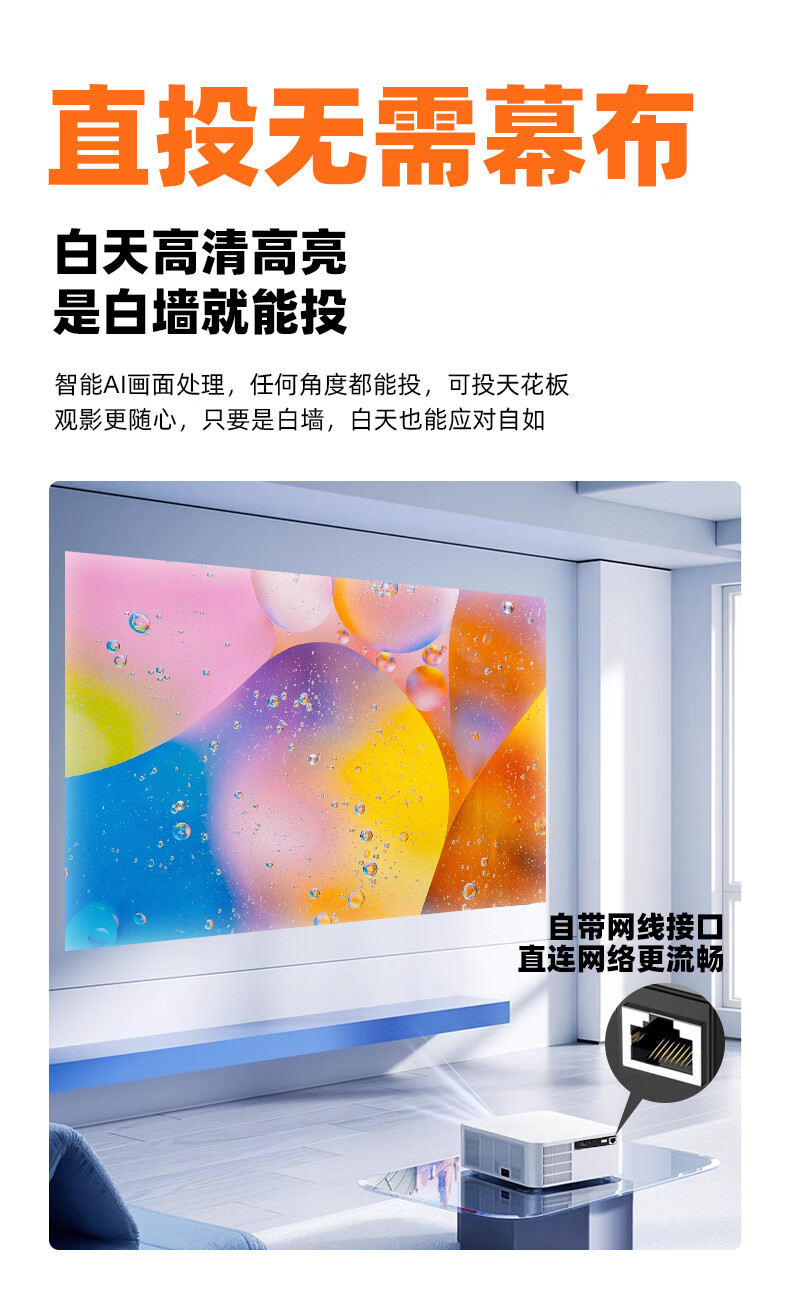MRMO K8 daytime home smart projector, home theater 4k decoding, ultra-clear closed conference room, office bedroom, wall projection, mobile phone screen projection, TV projector all-in-one, sealed smart focus correction (supports Hongmeng Huawei, Apple and Android phone screen projection)
