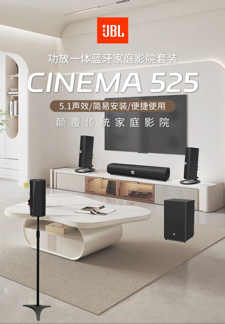 JBL CINEMA 525 satellite home theater Bluetooth wireless speaker integrated power amplifier 5.1 surround speaker TV living room panoramic sound home computer audio theater player theater version CINEMA 525 home theater set