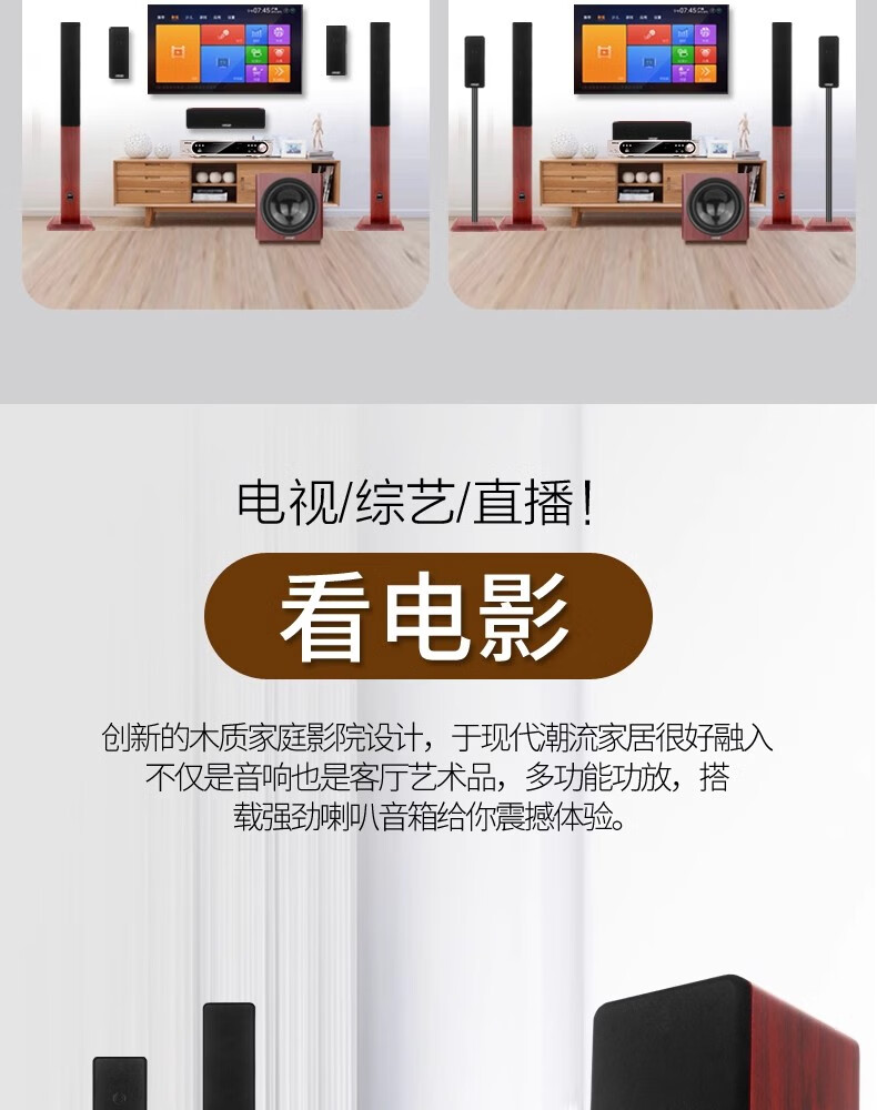 YTFY柏林之声家庭影院音响套装5.1家用客厅环绕组合音箱电视k歌重低音 七件套(10寸低音炮)+无线环绕