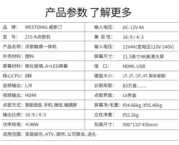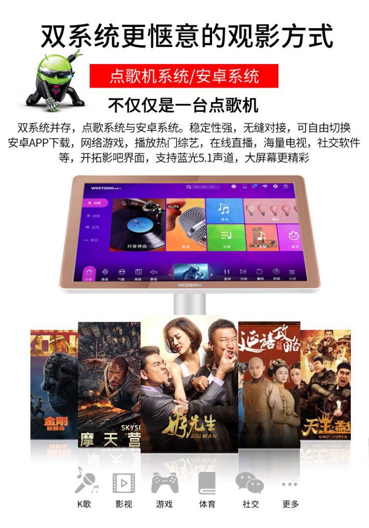 Westin home ktv audio singing and karaoke machine all-in-one karaoke all-in-one karaoke machine vertical T220-500G intelligent voice full-view capacitive screen national karaoke system