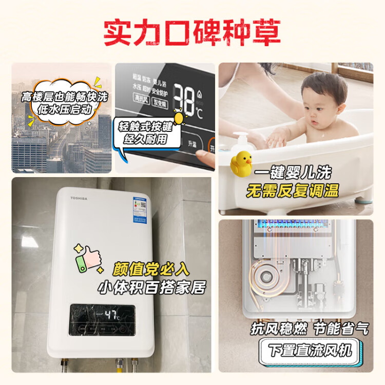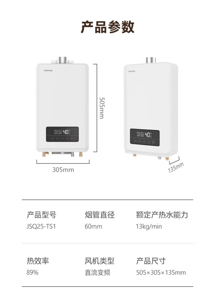 TOSHIBA White Jade TS1 13-liter gas water heater 3D constant temperature variable frequency lower fan wind-resistant baby wash small size National subsidy 15% trade-in JSQ25-TS1