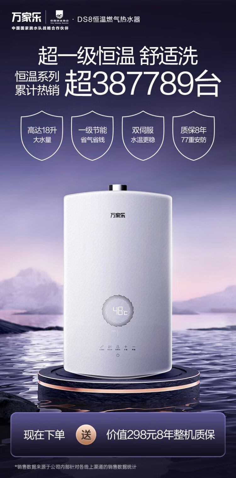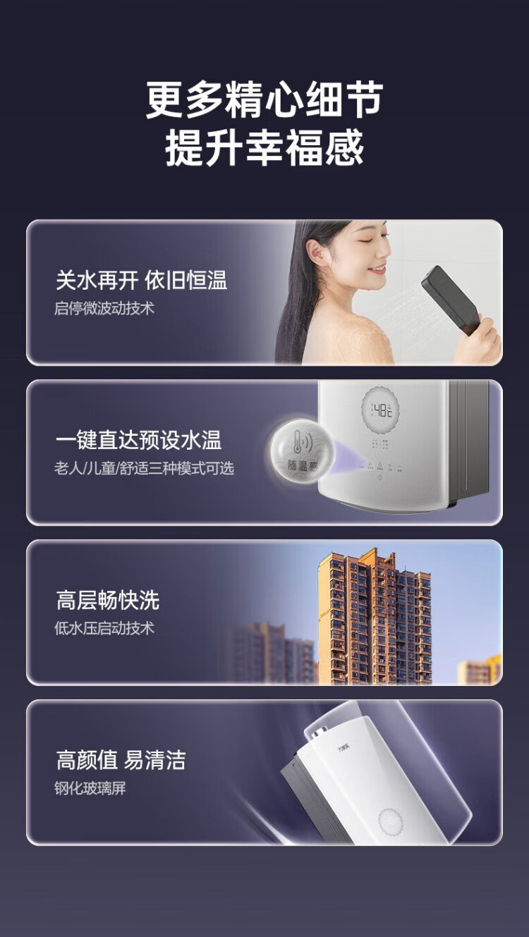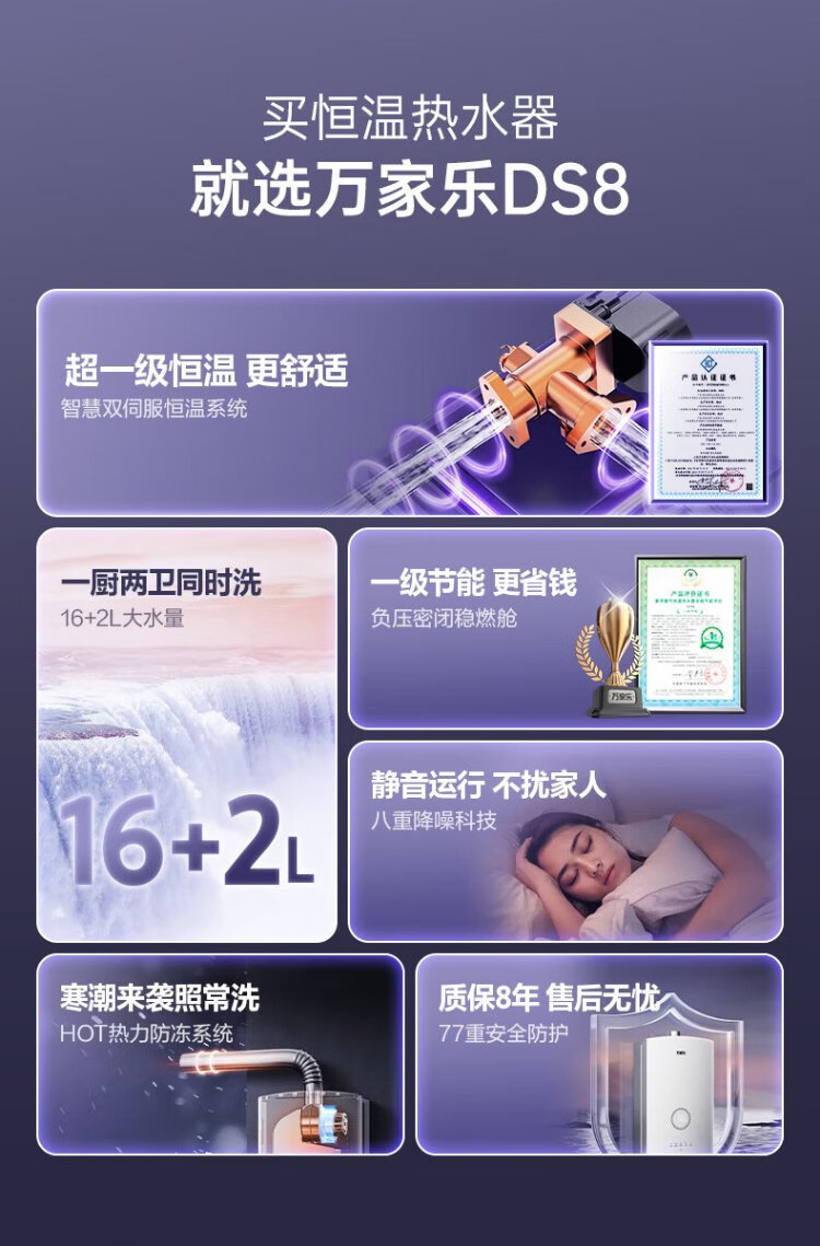 Macro Sleep Wash DS8(F) Energy-saving constant temperature dual-level 16-liter gas water heater natural gas glass screen water servo silent increase capacity large water volume anti-freeze trade-in