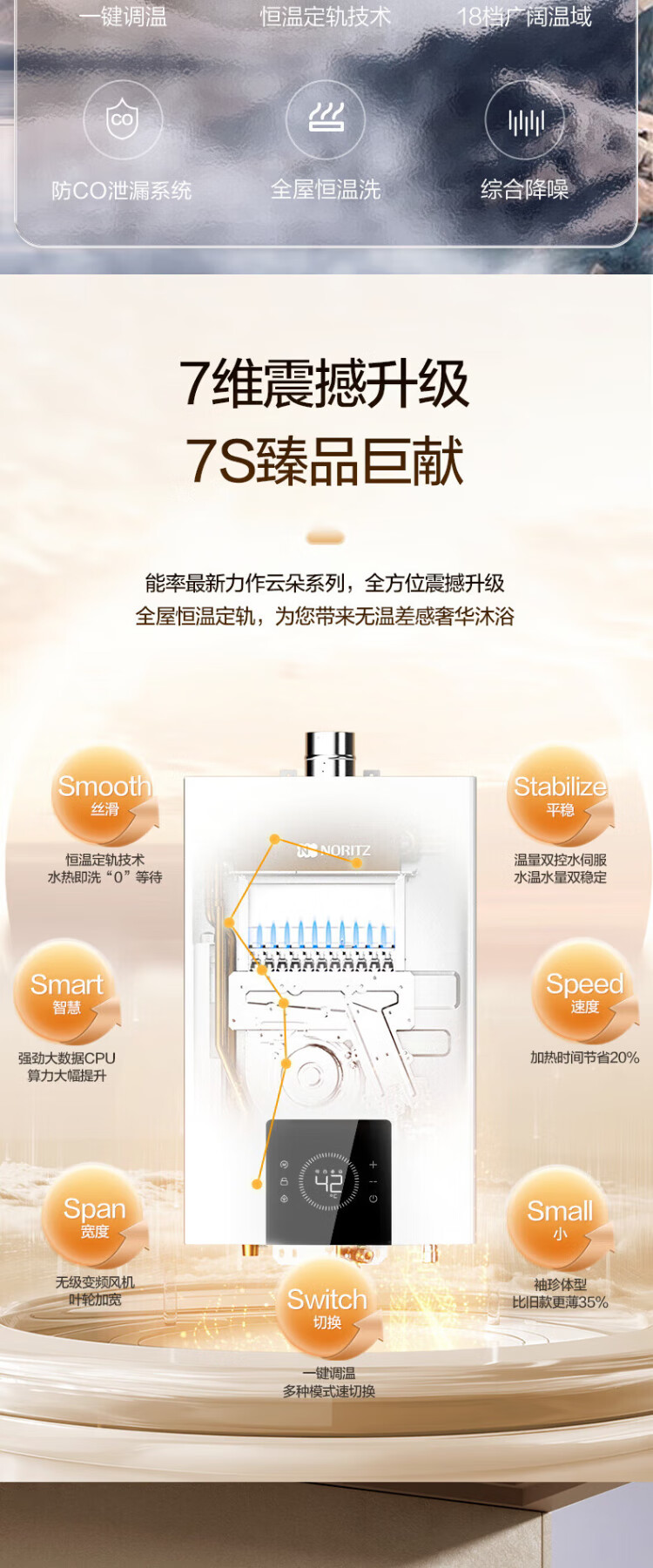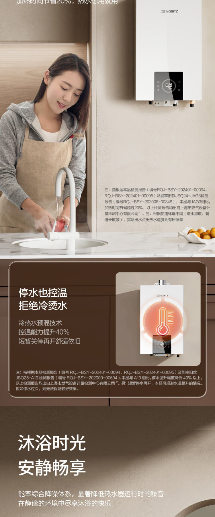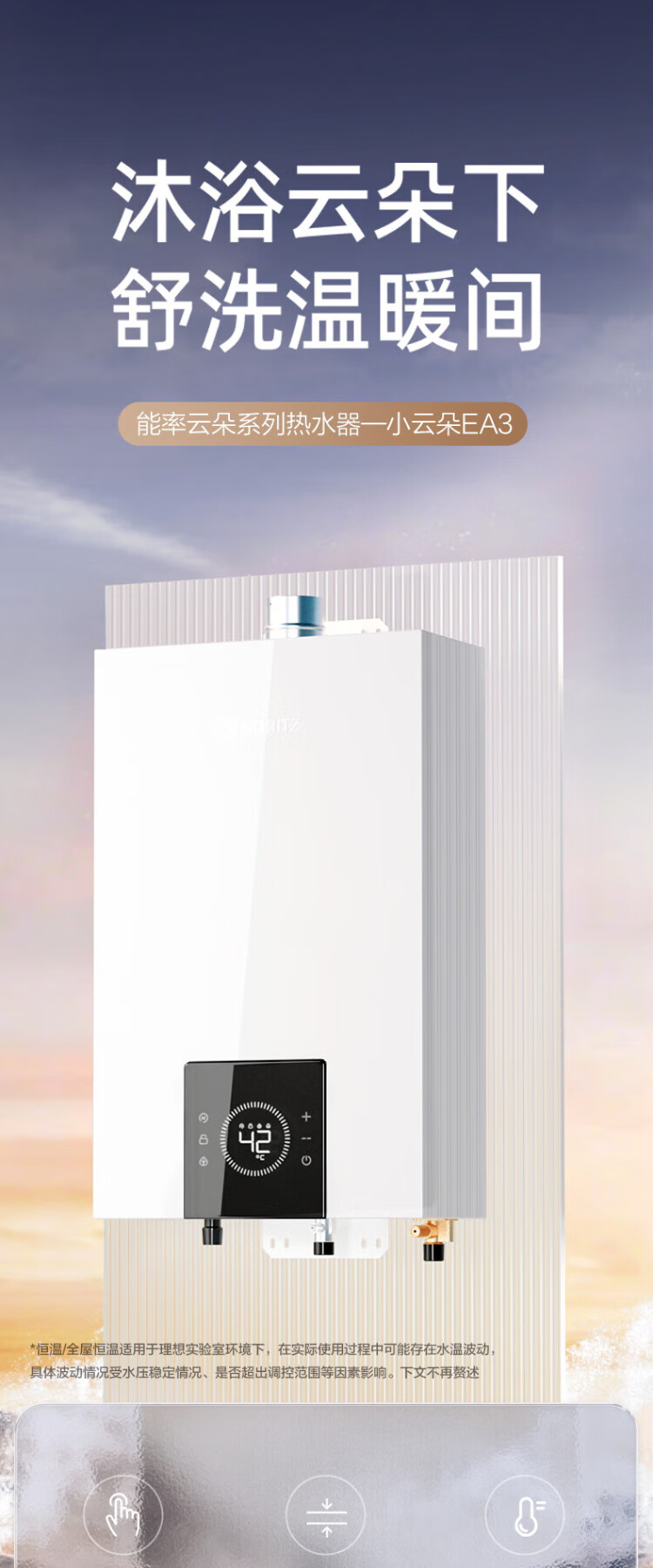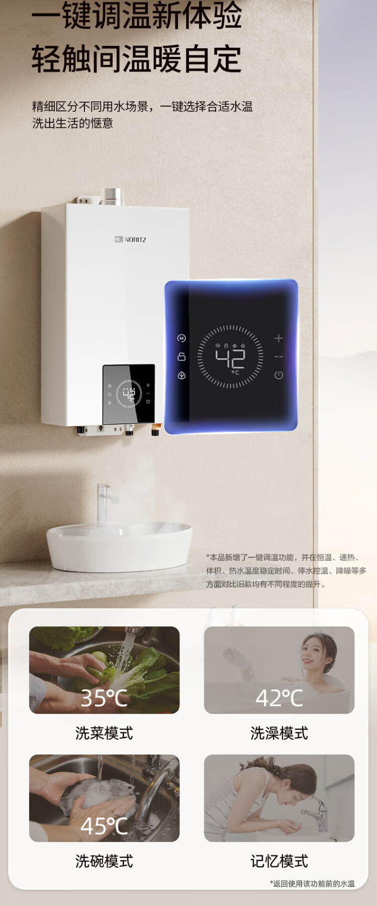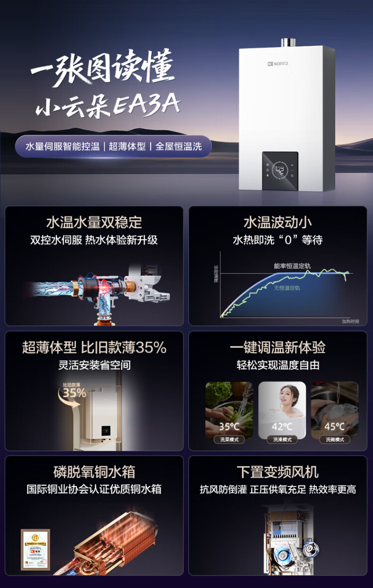 NORITZ Xiaoyunduo EA3A 16-liter gas water heater, natural gas, 15% national subsidy for home appliances, constant temperature smart core, temperature and volume dual control water servo 16EA3AFEX