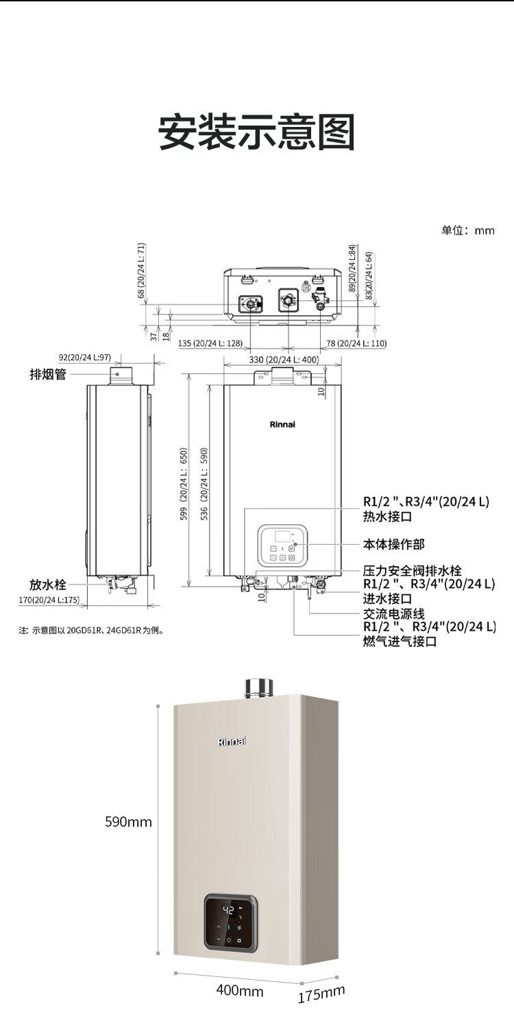 Rinnai Blue Whale 24L gas water heater, state subsidy, zero cold water, large water volume 24GD61R (JSQ47-GD61R)