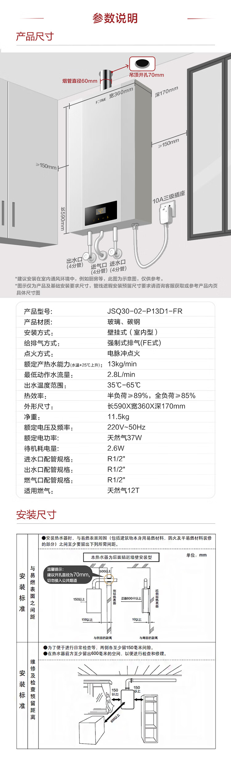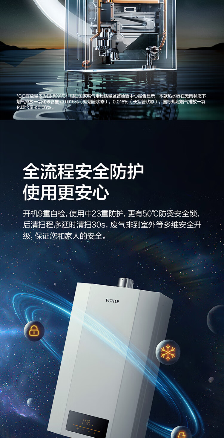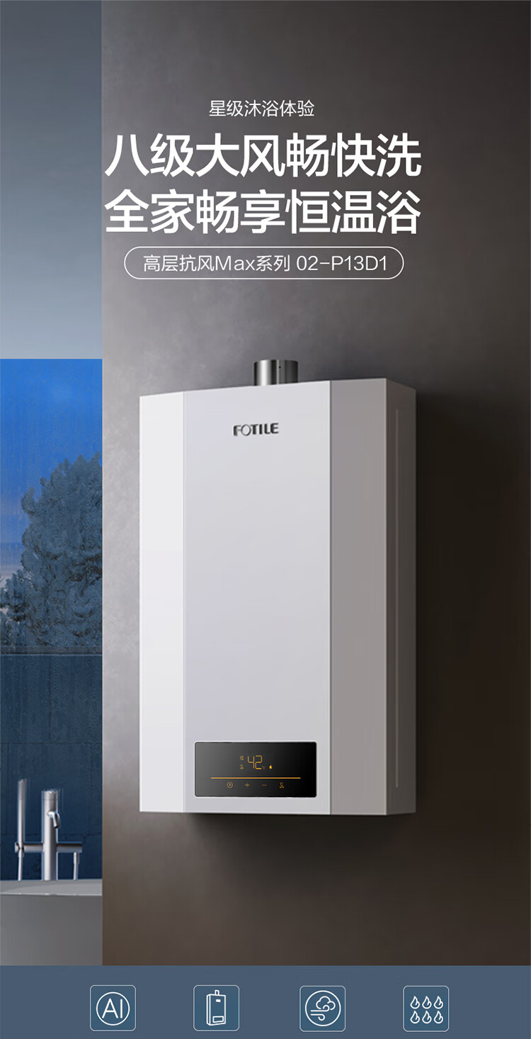 FOTILE national subsidy gas water heater 13 liters for home bathing, high-rise wind resistance and antifreeze, energy saving and gas saving, smart constant temperature 02-P13D1