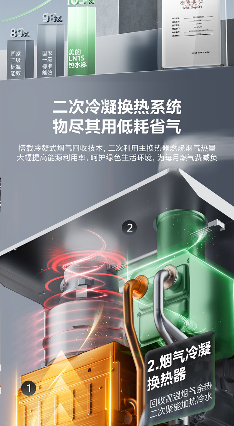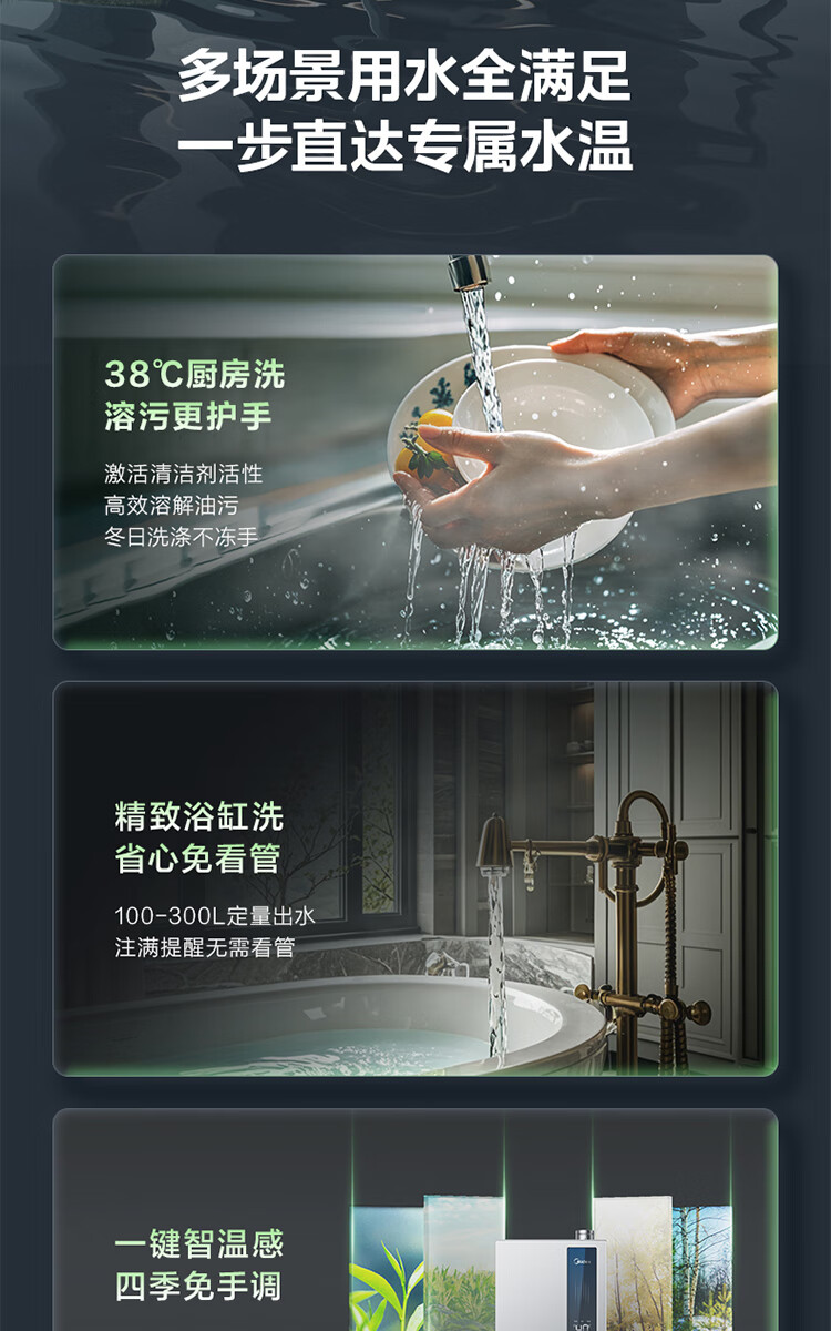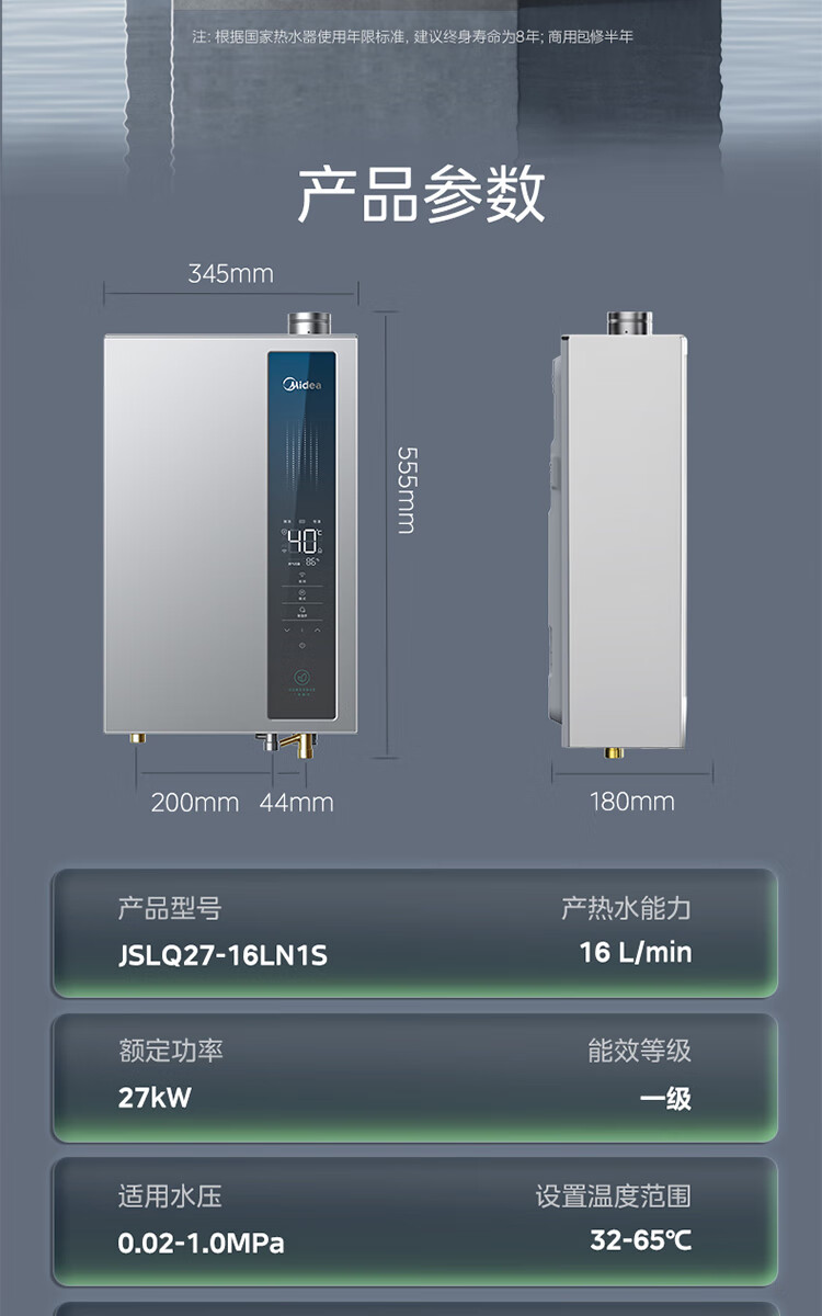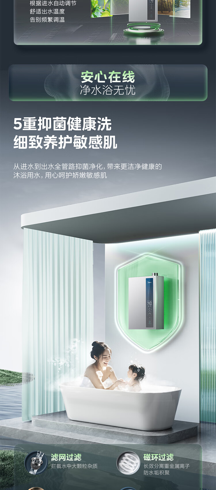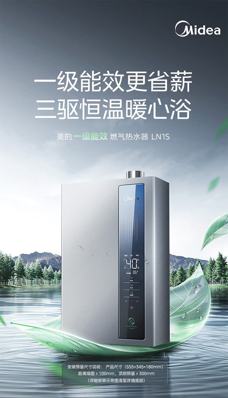 Midea 16LN1S 16-liter natural gas water heater, super first-class energy efficiency, waterfall bath, energy-saving constant temperature, large water volume, increased flow by 113%, national subsidy of 20%