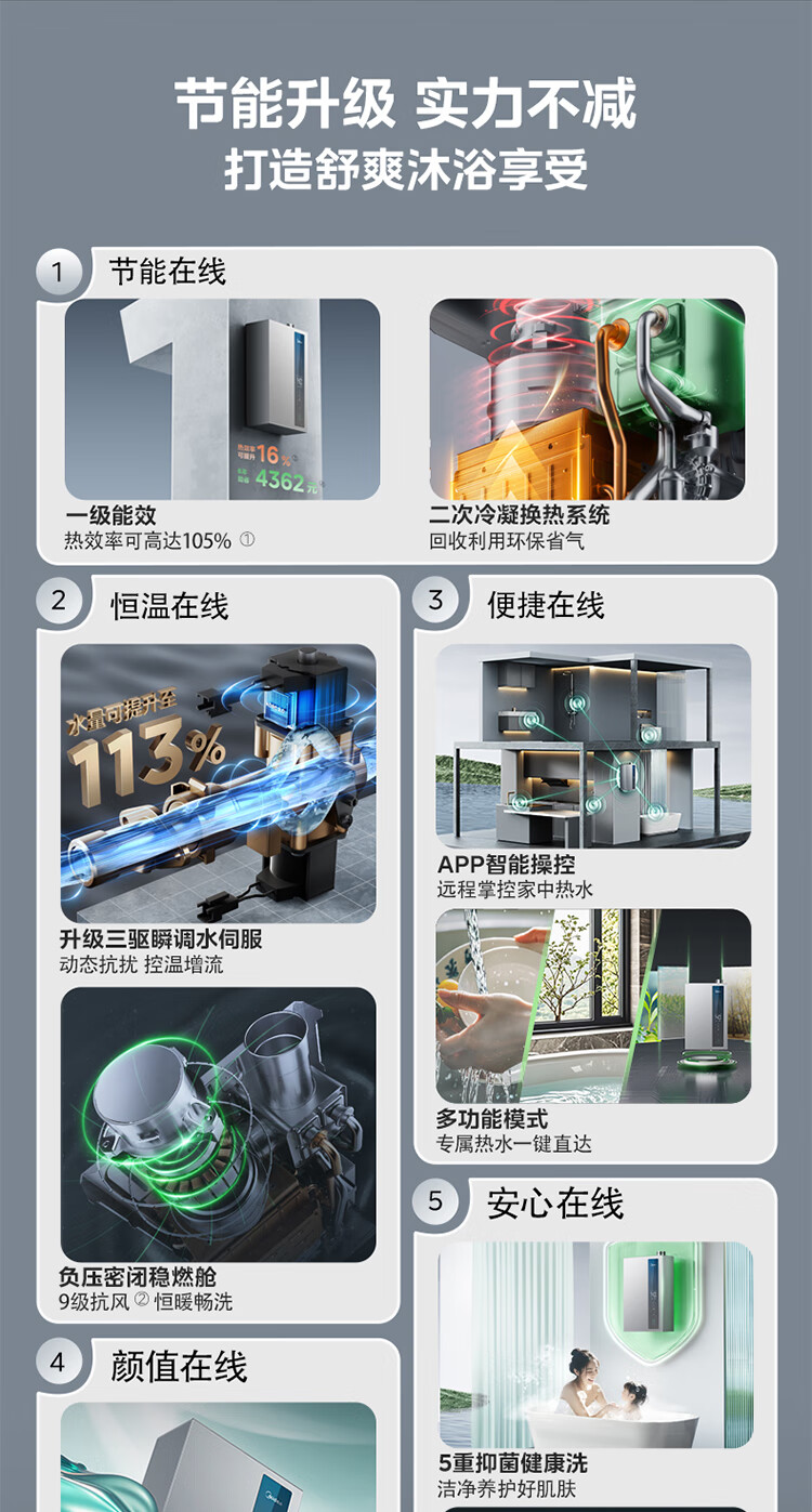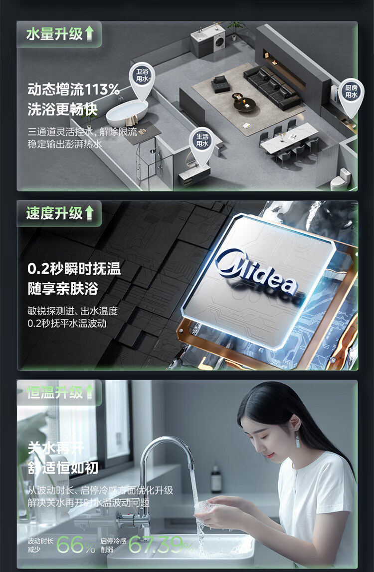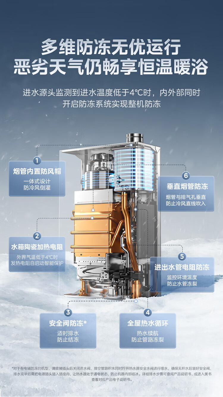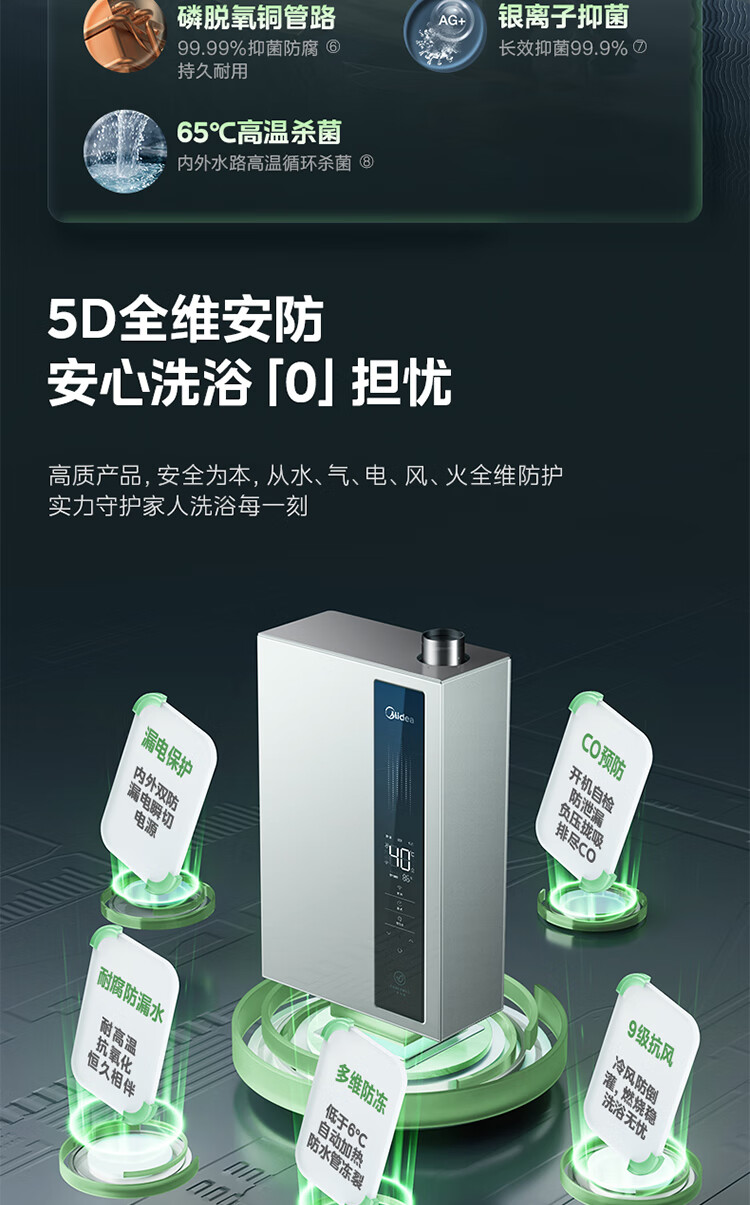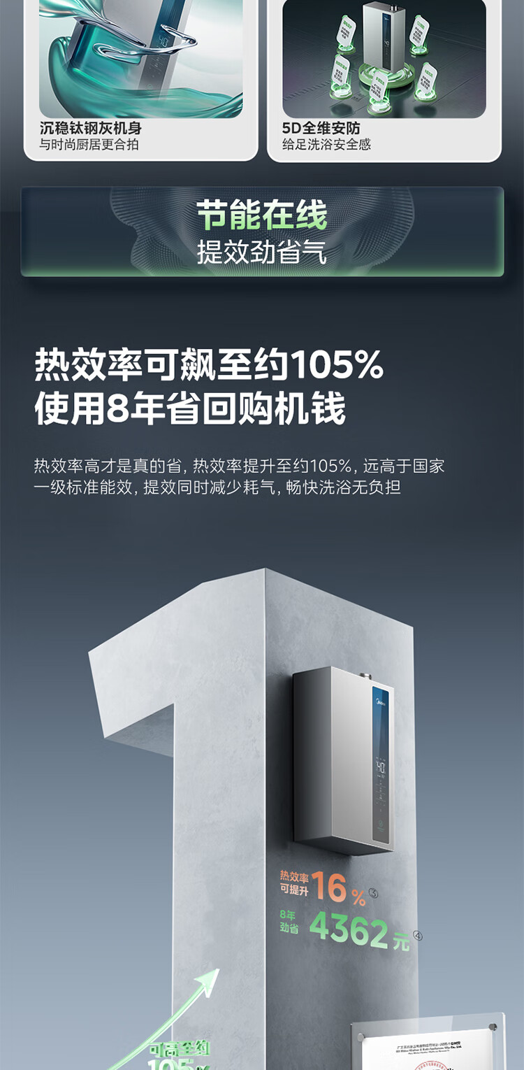 Midea 16LN1S 16-liter natural gas water heater, super first-class energy efficiency, waterfall bath, energy-saving constant temperature, large water volume, increased flow by 113%, national subsidy of 20%