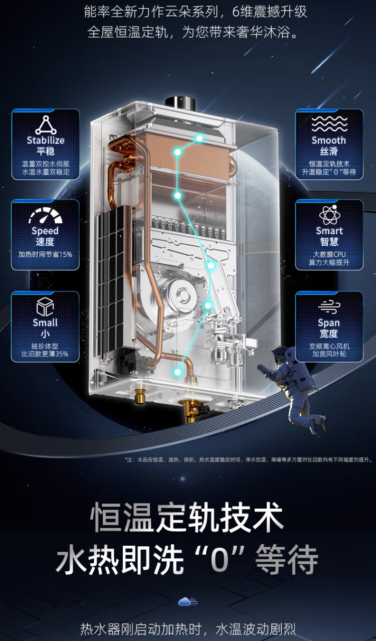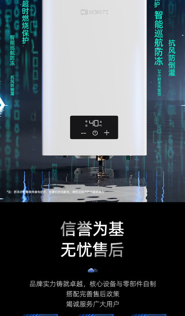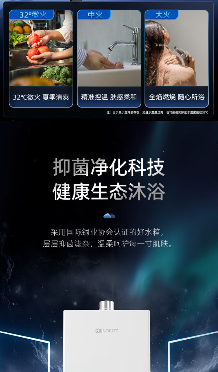 NORITZ Xiaoyunduo S gas water heater natural gas home appliances national subsidy 15% fast heating large water volume constant temperature dual water control servo bottom fan 16EA2AFEX