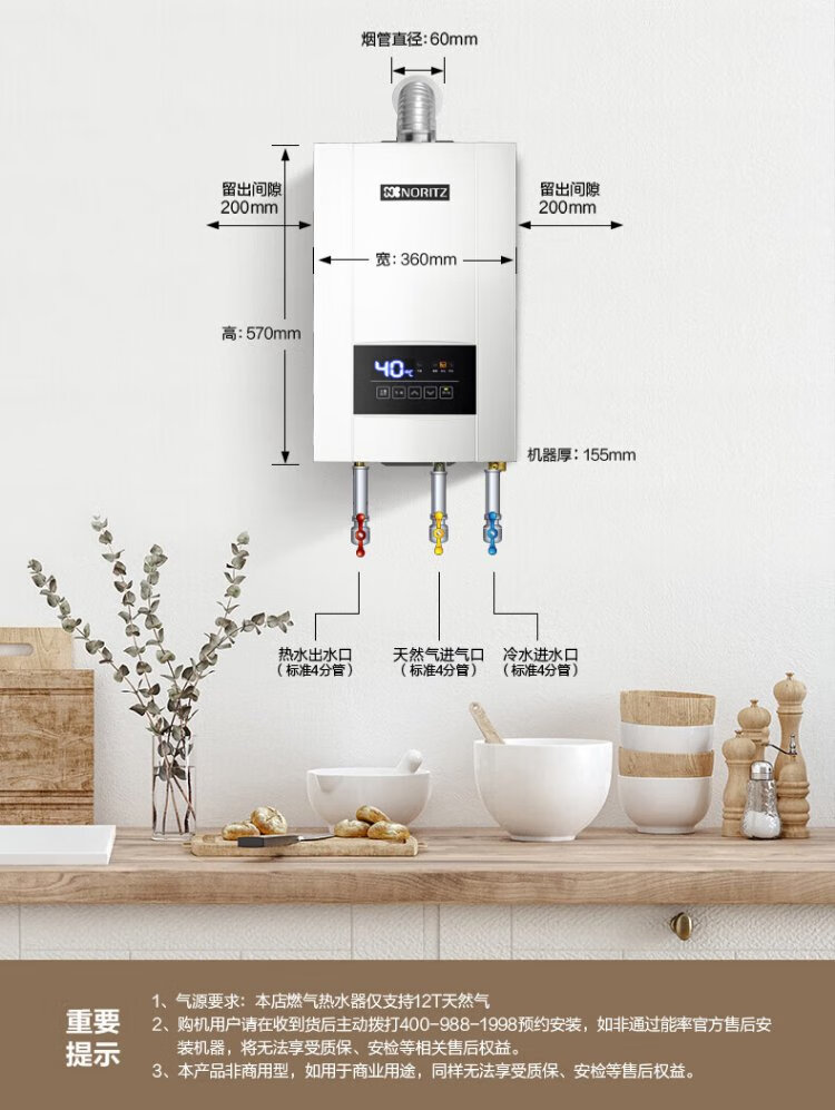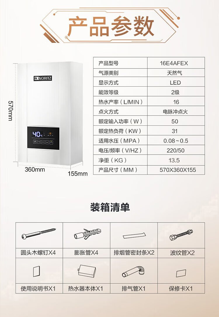 NORITZ 16-liter water servo constant temperature gas water heater E4 15% national subsidy for home appliances household forced exhaust type noise reduction silent natural gas trade-in JSQ31-E4
