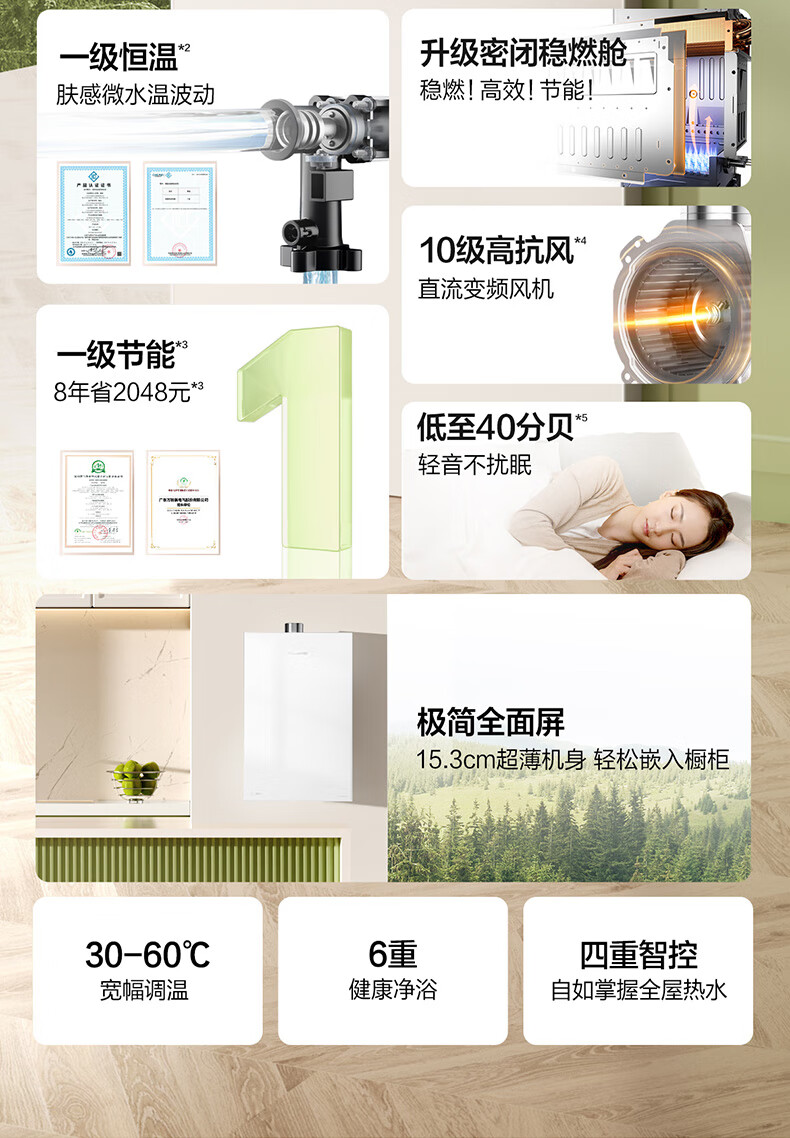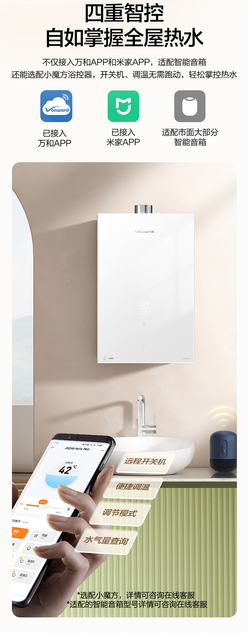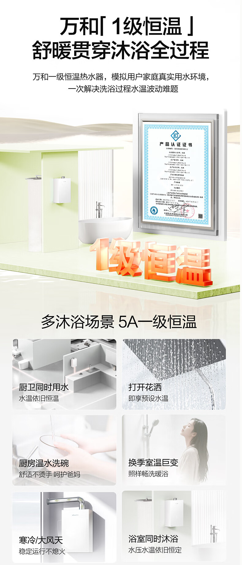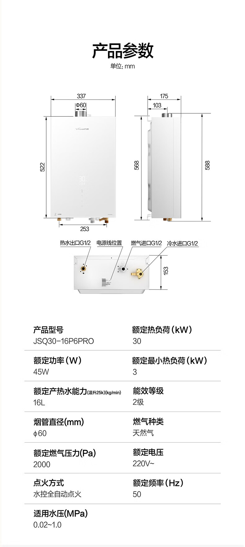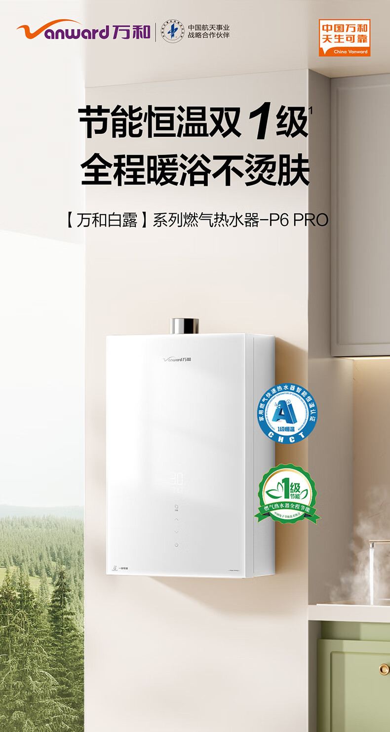 Vanward Bailu P6 PRO Level 1 constant temperature, 15% national subsidy, 16 liters of natural gas water heater, DC frequency conversion, energy-saving, supercharged, large water volume, pear blossom white