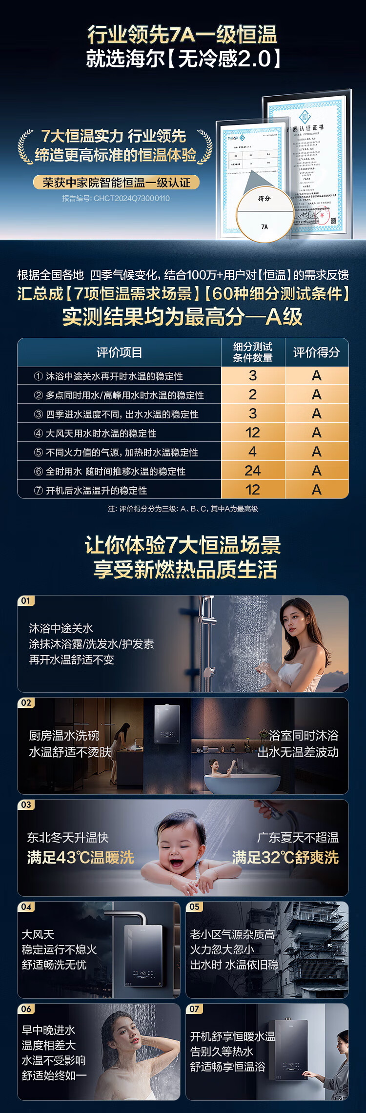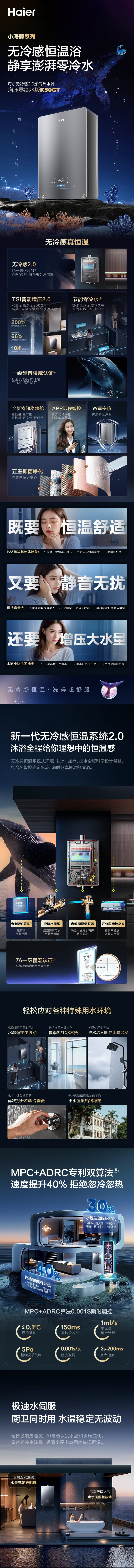 Haier No Cold 2.0 K50GT Zero Cold Water 16L Gas Water Heater Natural Gas Bath Household 7A Level 1 Constant Temperature Silent Large Water Volume National Subsidy 15%