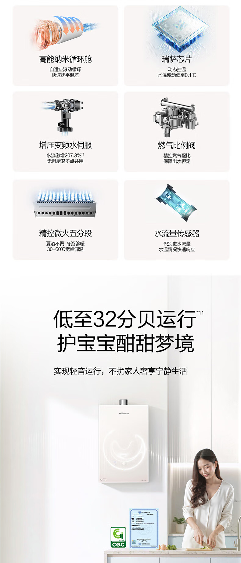 Vanward V9P PRO Nano Bubble Wash National Subsidy 15% 16L Gas Water Heater Natural Gas 5A Level 1 Constant Temperature Energy Saving Pressurized Silent Antifreeze