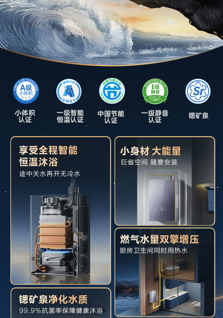 Macro Small Volume Space Master JD9 16-liter gas water heater state subsidy 15% natural gas rich strontium skin bath zero cold water booster level one silent trade-in