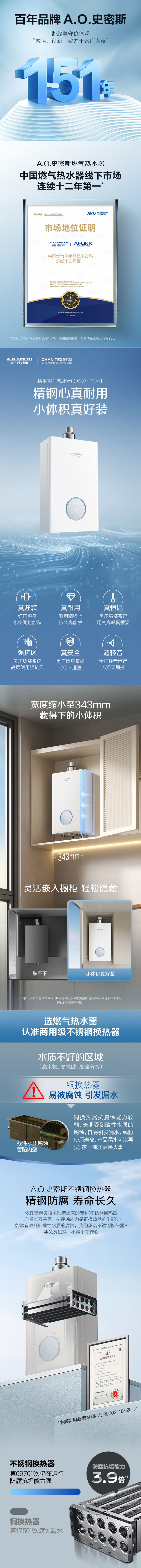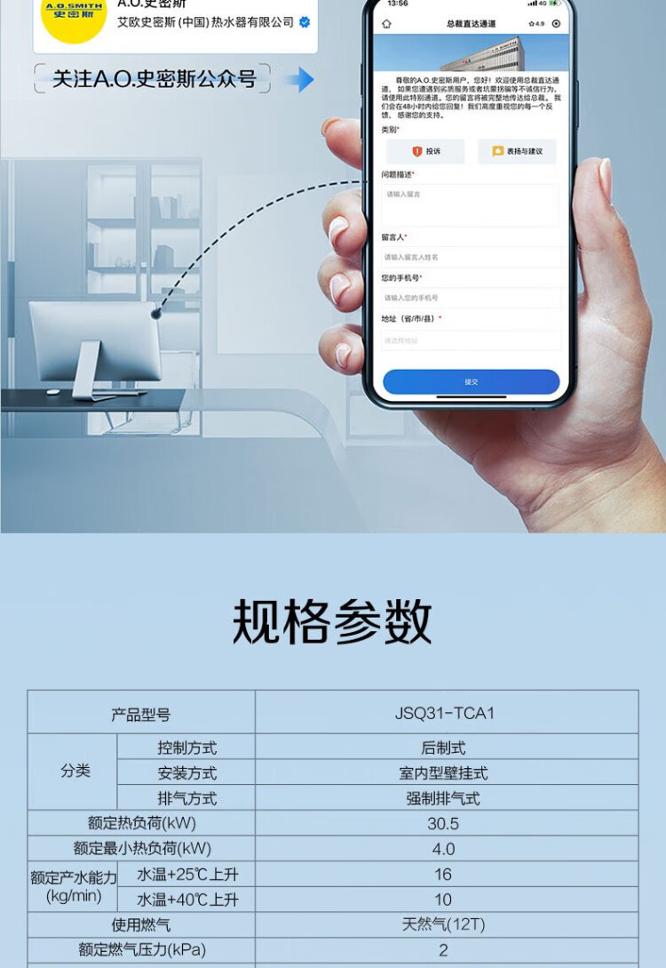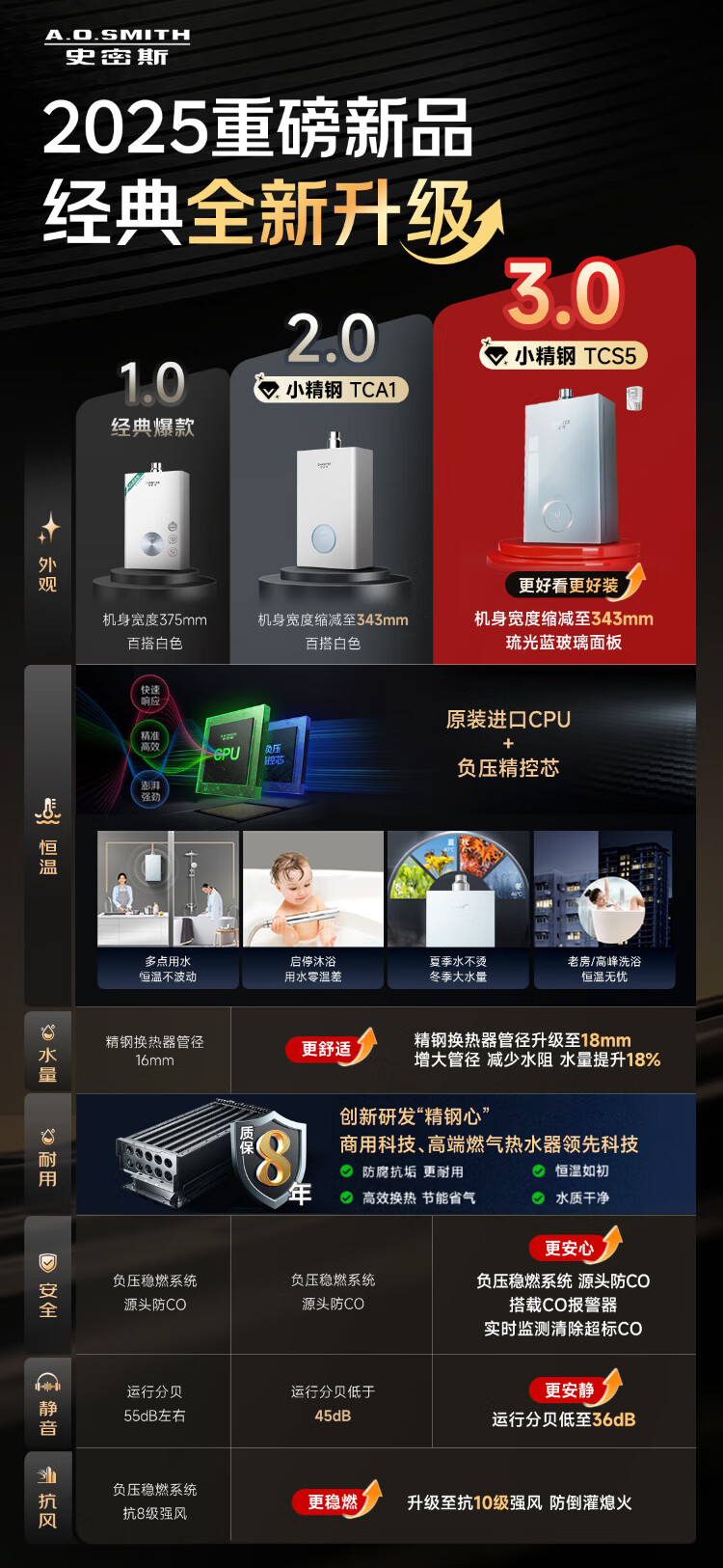 Smith (A.O.SMITH) Garnet small fine steel TCA1 16-liter fine steel gas water heater national subsidy JSQ31-TCA1 long-lasting constant temperature and large water volume new product
