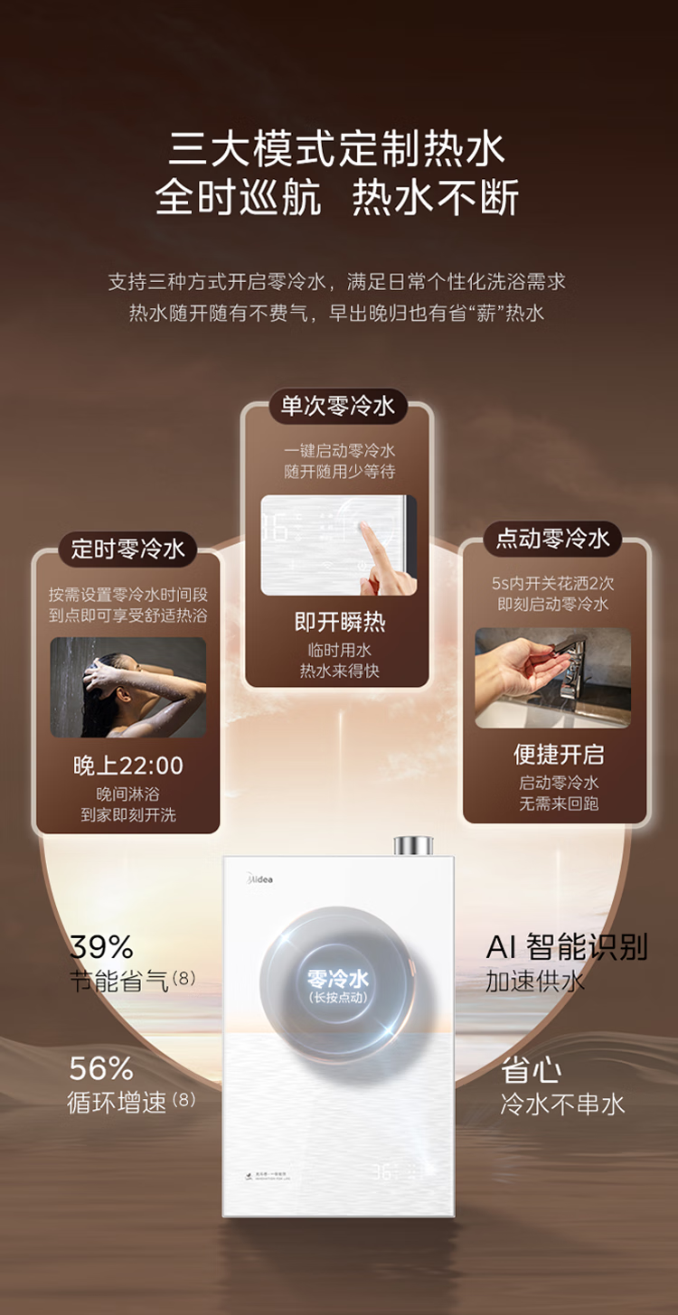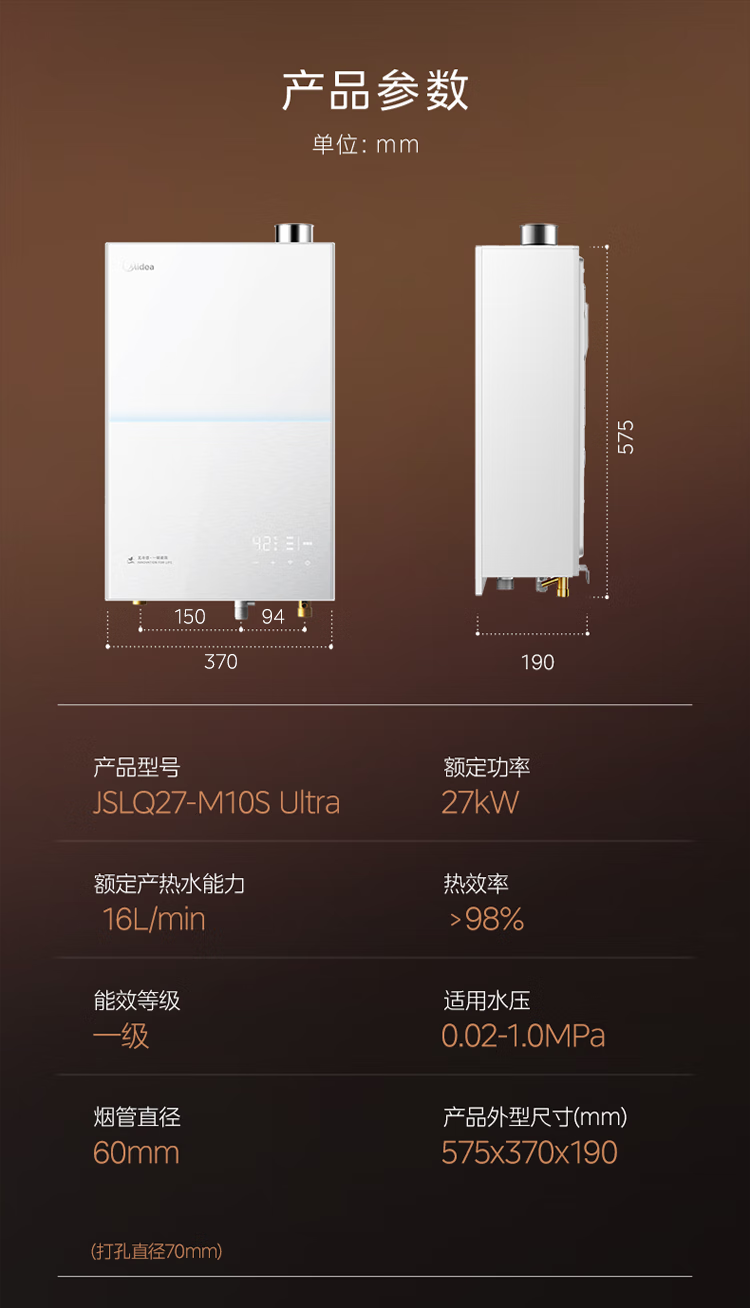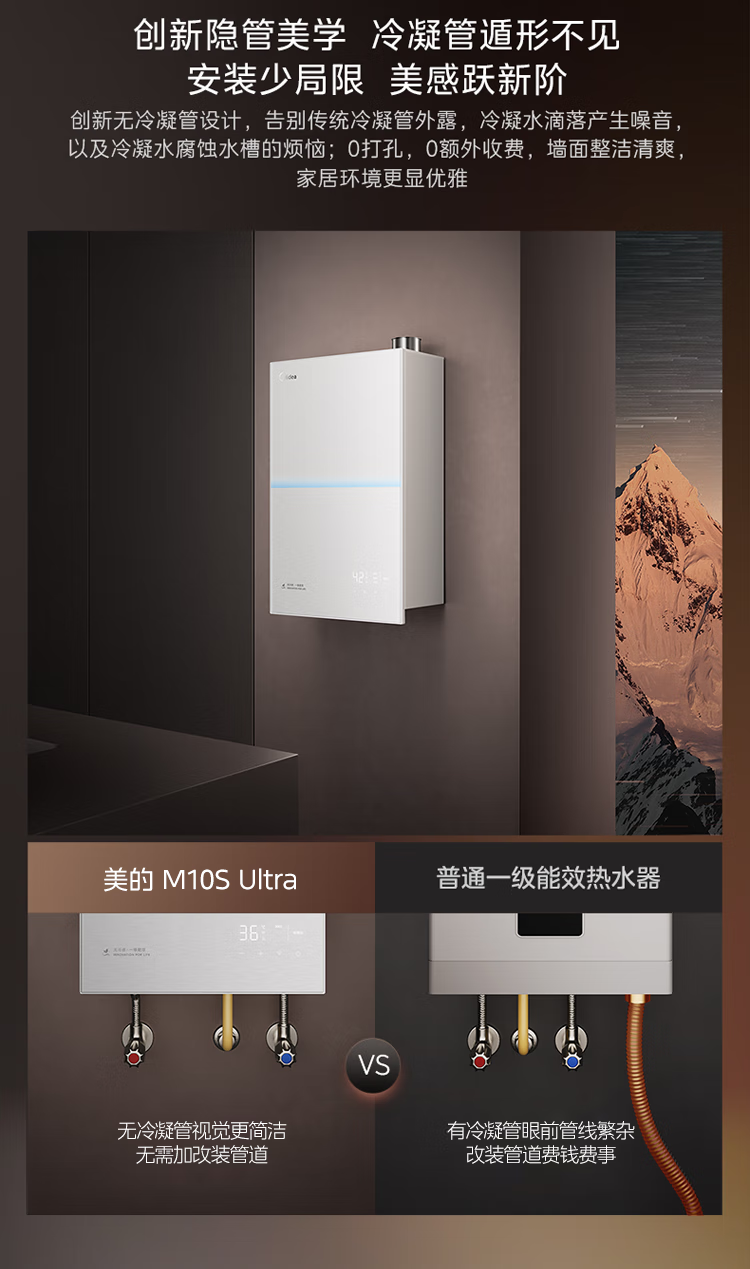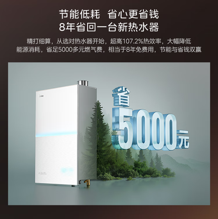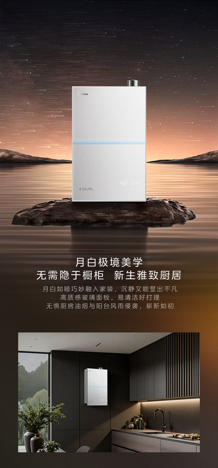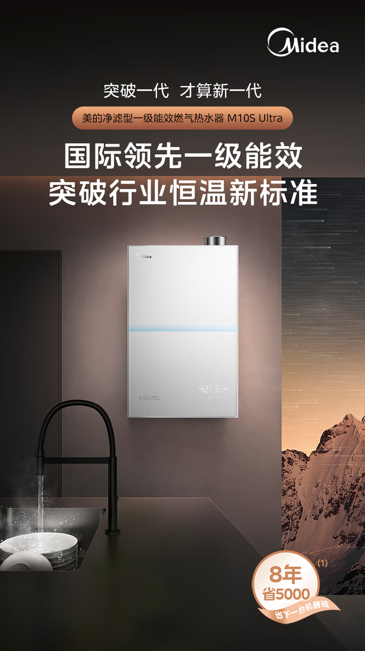 Midea's first-level energy efficiency non-condensing M10S Ultra 16-liter natural gas water heater, zero cold water boost, no cold feeling, 7A constant temperature lower-mounted fan, white with 20% national supplement