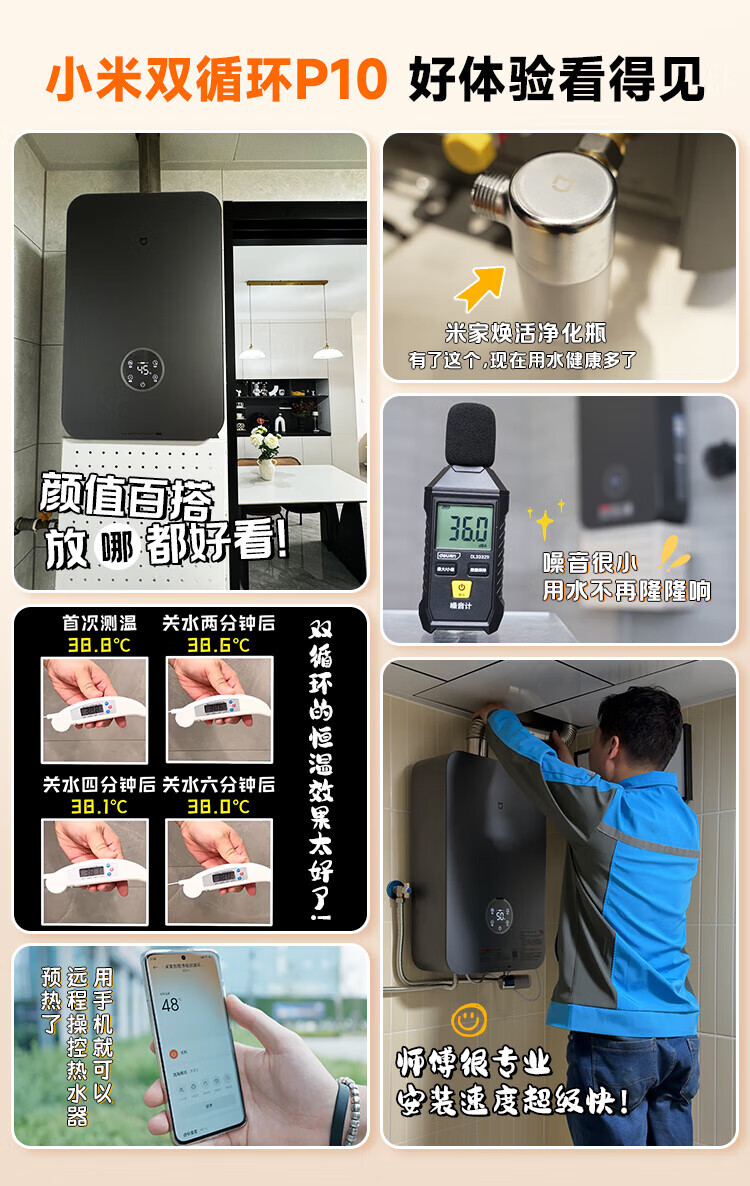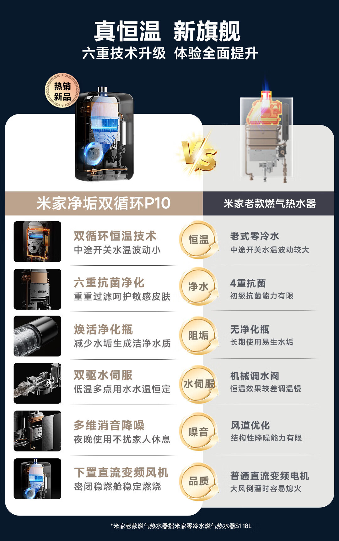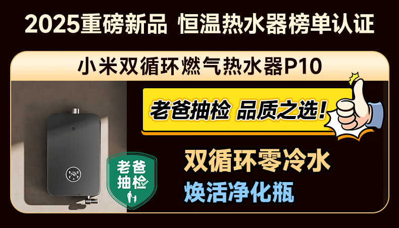 Mijia Xiaomi Dual Cycle Zero Cold Water P10 16-liter Constant Temperature Gas Water Heater Level 1 Silent Cleaning Pressurized Water Servo Natural Gas National Subsidy Trade-in MJ06