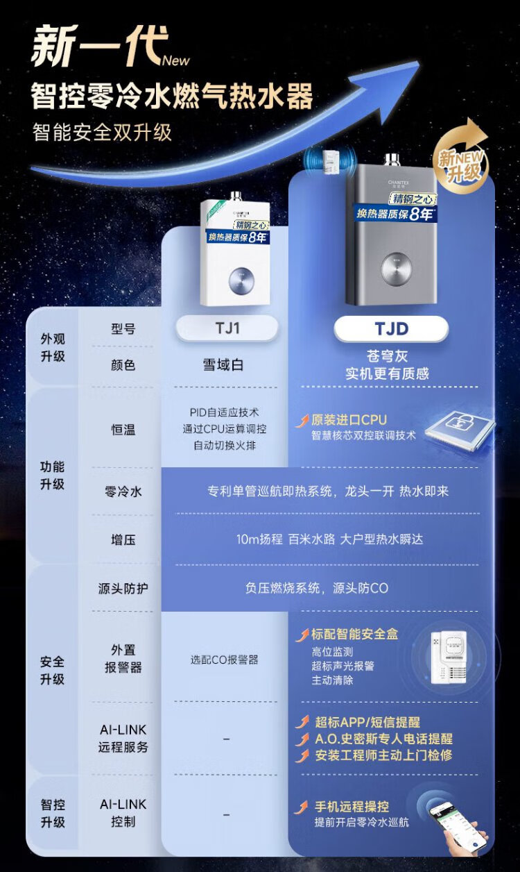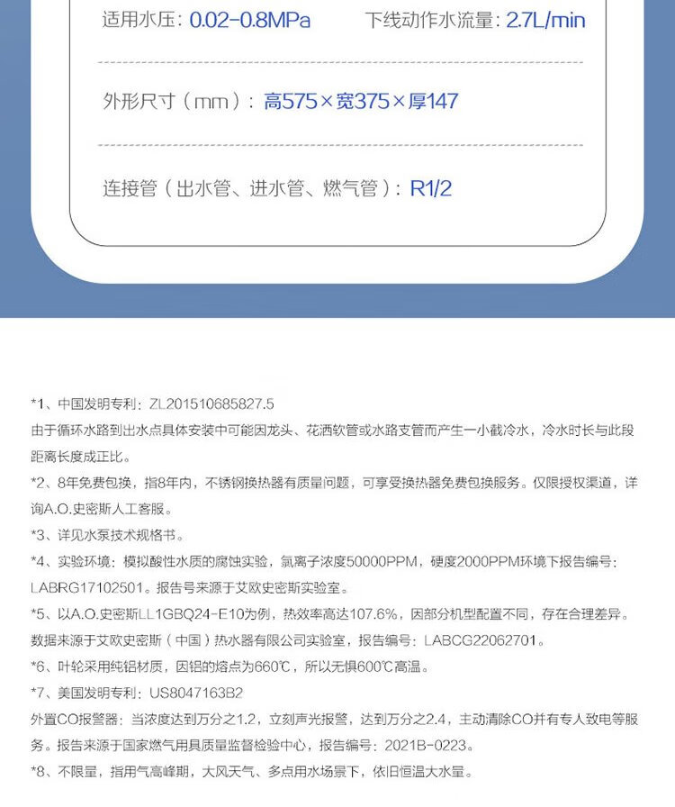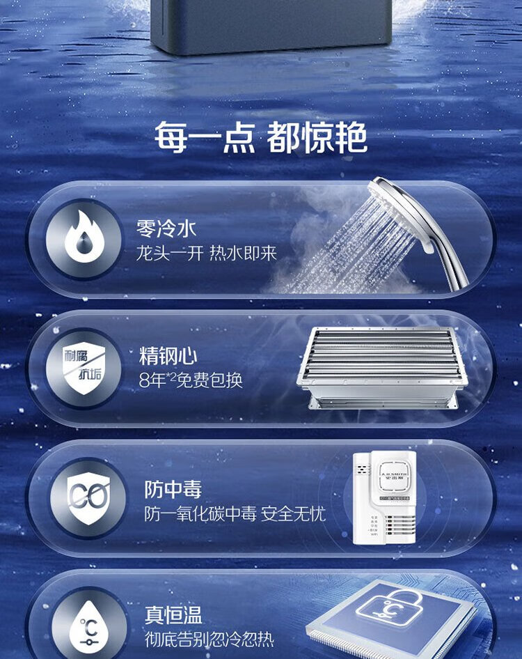 A.O.SMITH Garnet 16-liter supercharged zero-cold water gas water heater JSQ31-TJD, long-lasting constant temperature, large water volume, smart and safe, stainless steel heat exchanger package for 8 years, new product