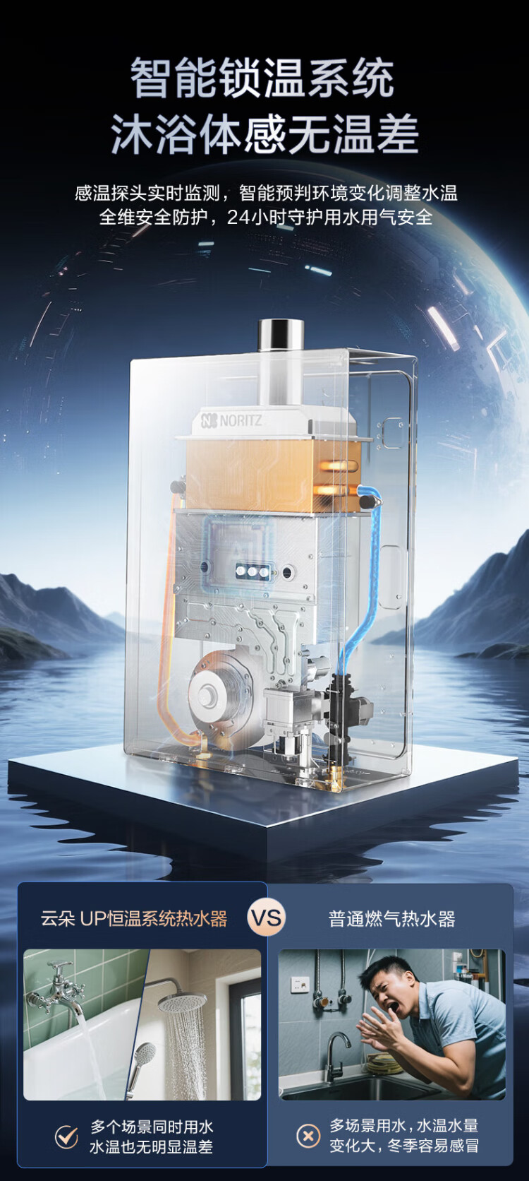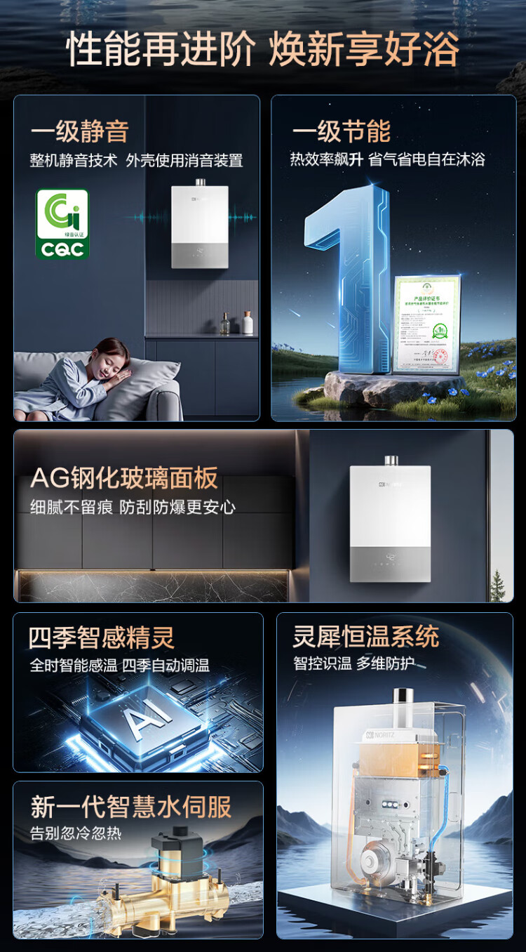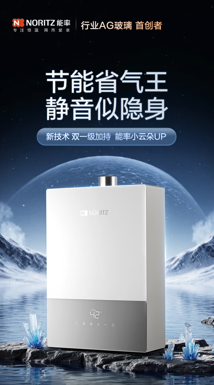 NORITZ Xiaoyunduo UP 16-liter gas water heater natural gas 15% national subsidy for home appliances AG glass first-level silent energy-saving water servo 16EX33AFEX