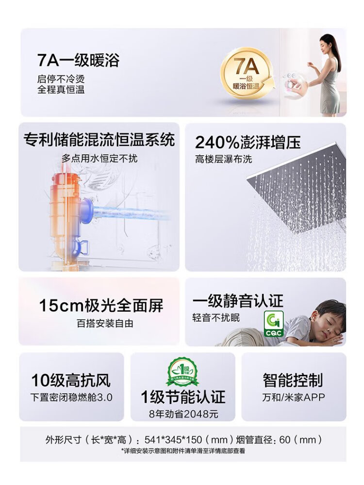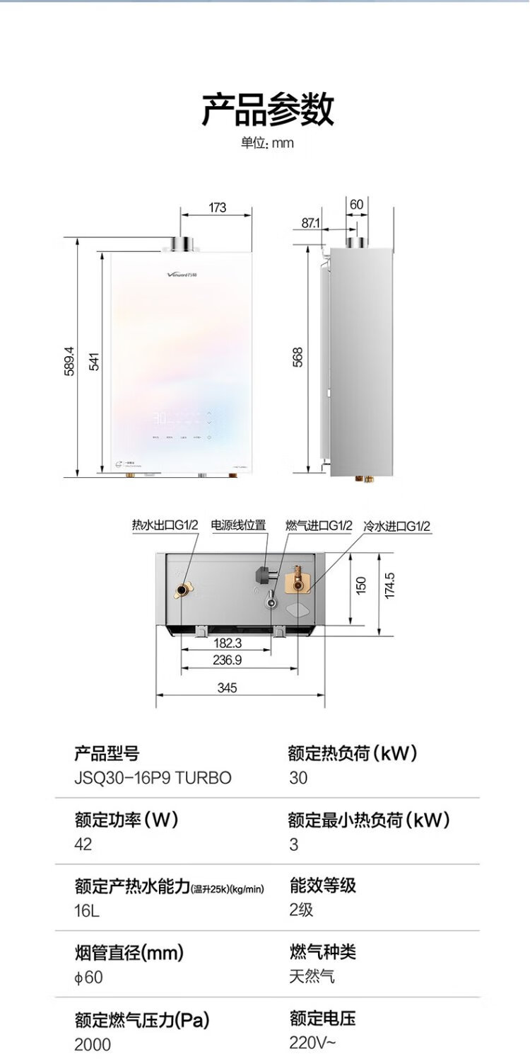 Vanward Bailu P9 TURBO 7A first-level warm bath without cold feeling 16 liters lower fan gas water heater natural gas 240% supercharged and silent National subsidy 15%
