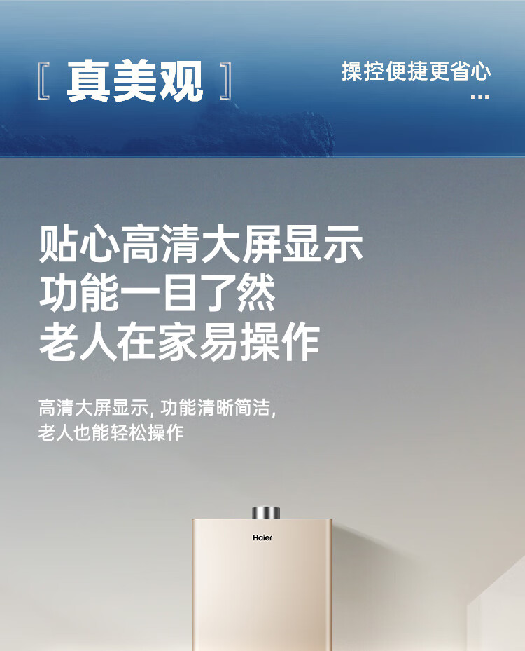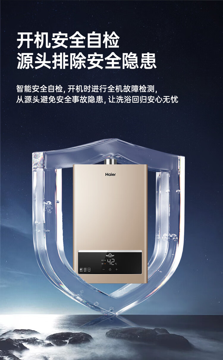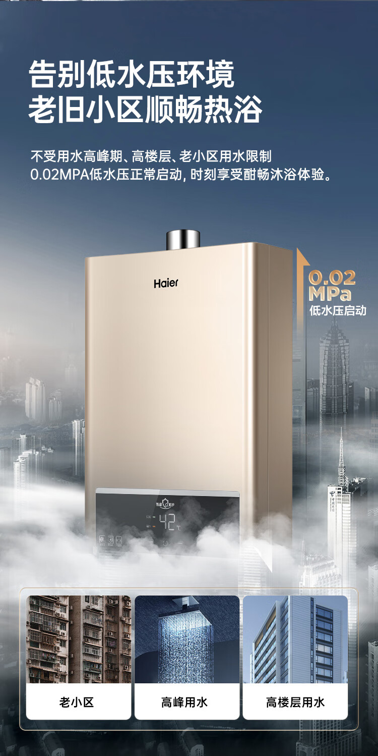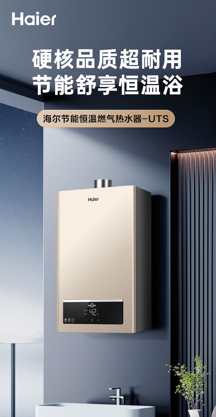 Haier 12 liter liquefied gas water heater gas frequency conversion smart constant temperature household ECO energy saving 40% small size instant heating forced exhaust water and gas double-adjustable low pressure start large screen anti-freeze UTS 12L UTS liquefied gas one kitchen and one bathroom 12 liters