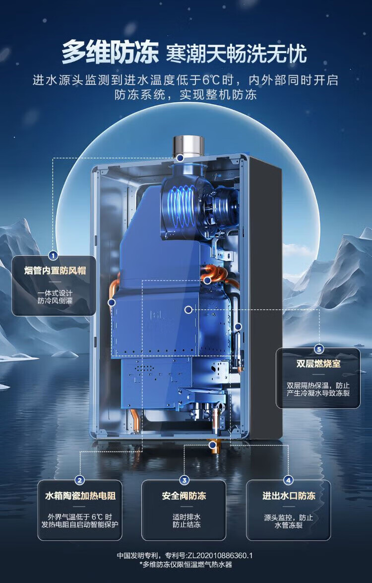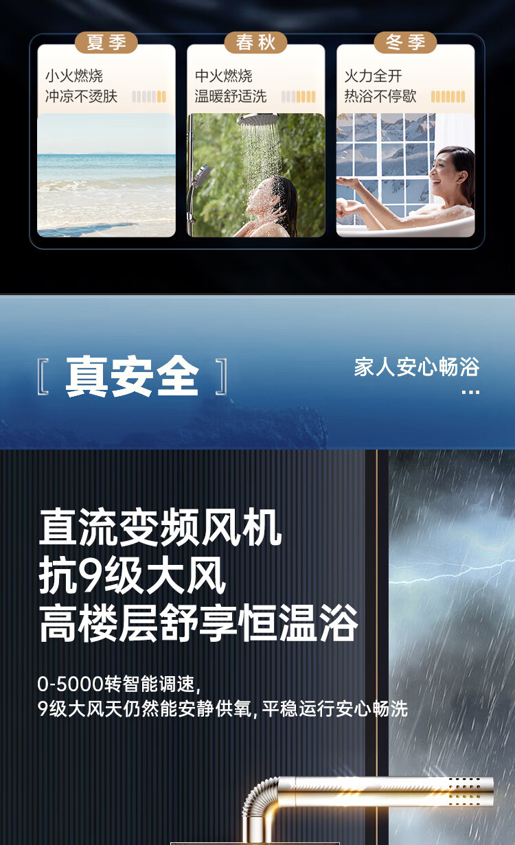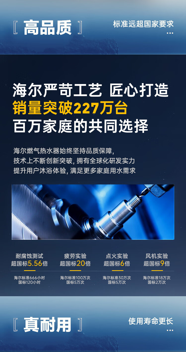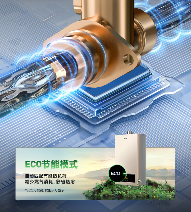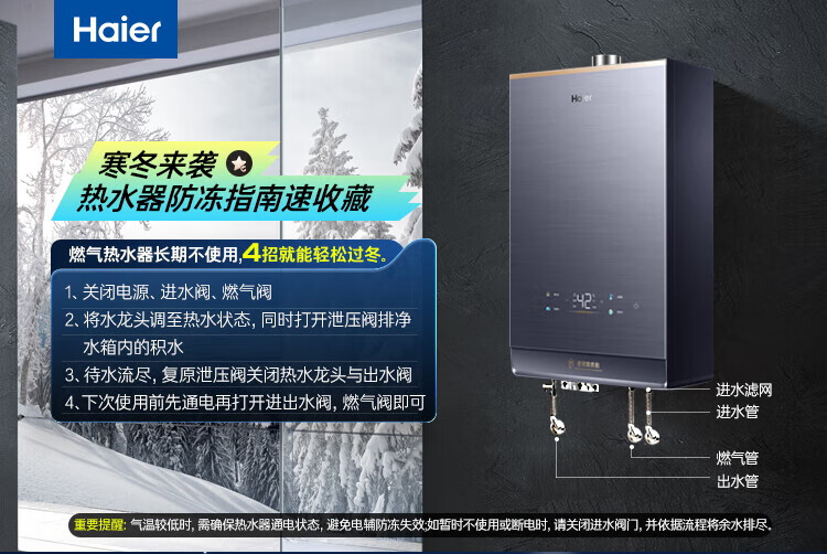 Haier 12 liter liquefied gas water heater gas frequency conversion smart constant temperature household ECO energy saving 40% small size instant heating forced exhaust water and gas double-adjustable low pressure start large screen anti-freeze UTS 12L UTS liquefied gas one kitchen and one bathroom 12 liters