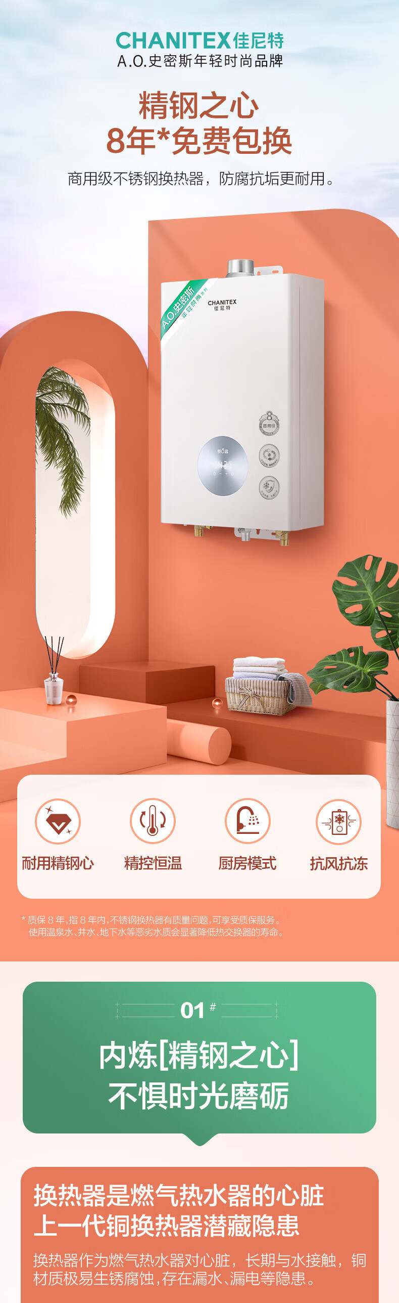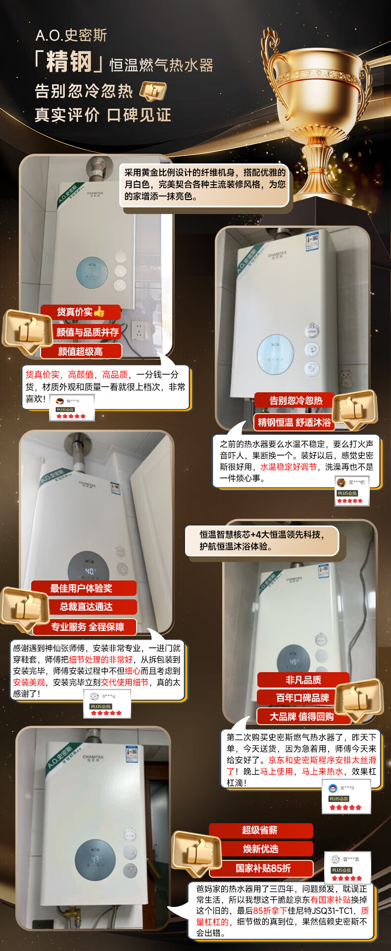 Smith (A.O.SMITH) Garnet gas water heater 13 liters of home appliances, national subsidies, precise control and constant temperature, stainless steel heat exchanger, home bathing, wind resistance and anti-freeze, natural gas TC1 13L, constant temperature and comfort