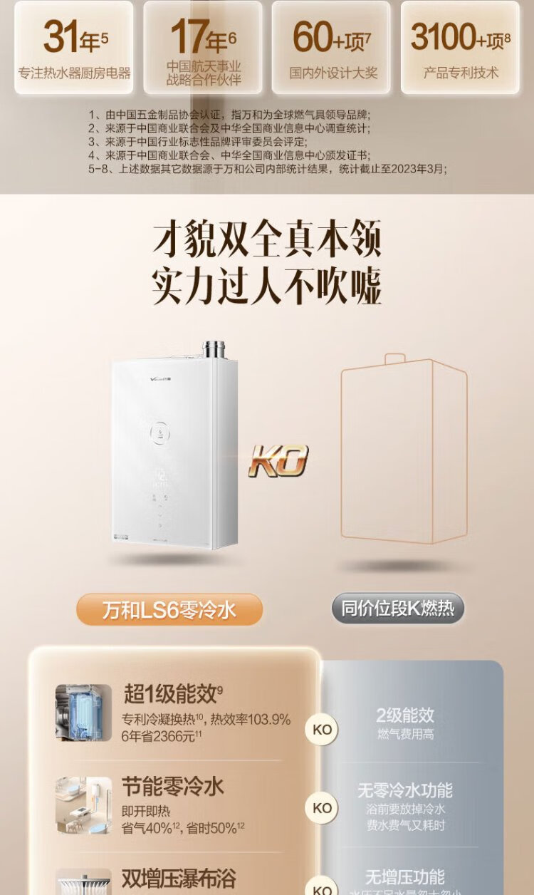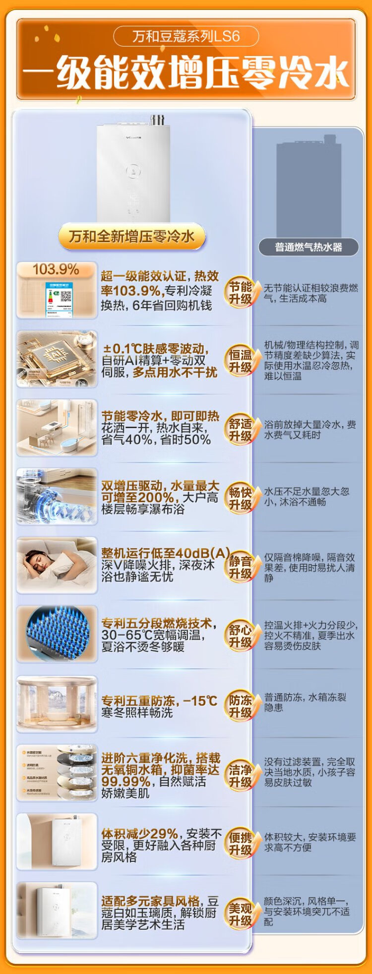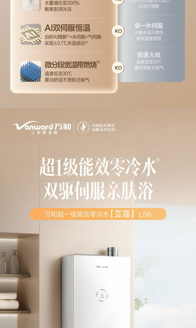 Vanward cardamom 16LS6 20% national subsidy gas water heater 16 liters of natural gas double supercharging zero cold water household super first-class energy efficiency double servo constant temperature small volume 16L - powerful supercharging 200% - hot selling in the zero cold water industry