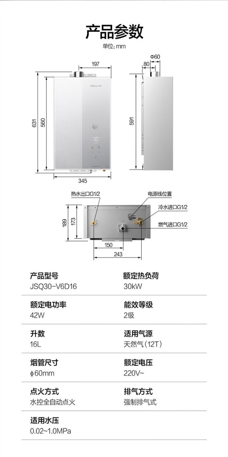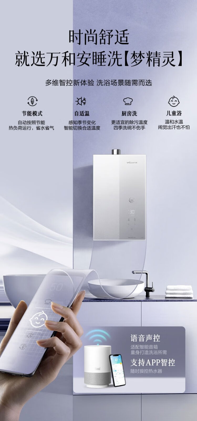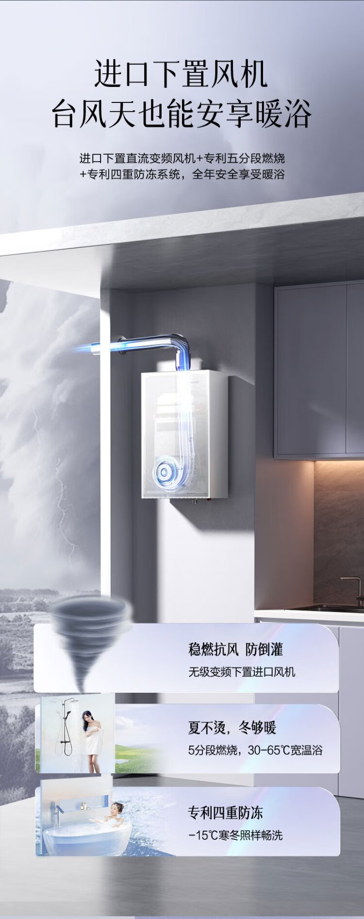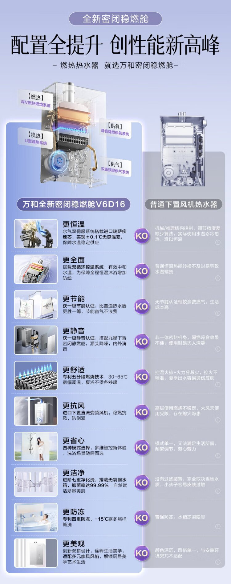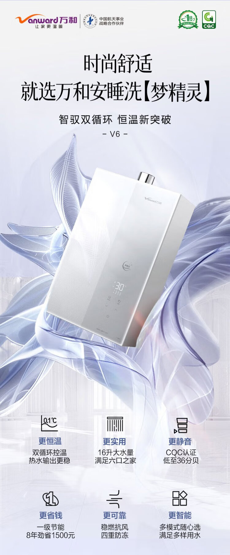 Vanward has a 15% national subsidy for Ansuiwash V6D16 gas water heater, 16 liters of natural gas bottom-mounted fan, dual-cycle constant temperature, energy-saving and silent, double-level trade-in, 16L bottom-mounted fan with strong wind resistance - hot-selling model