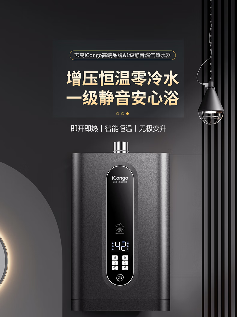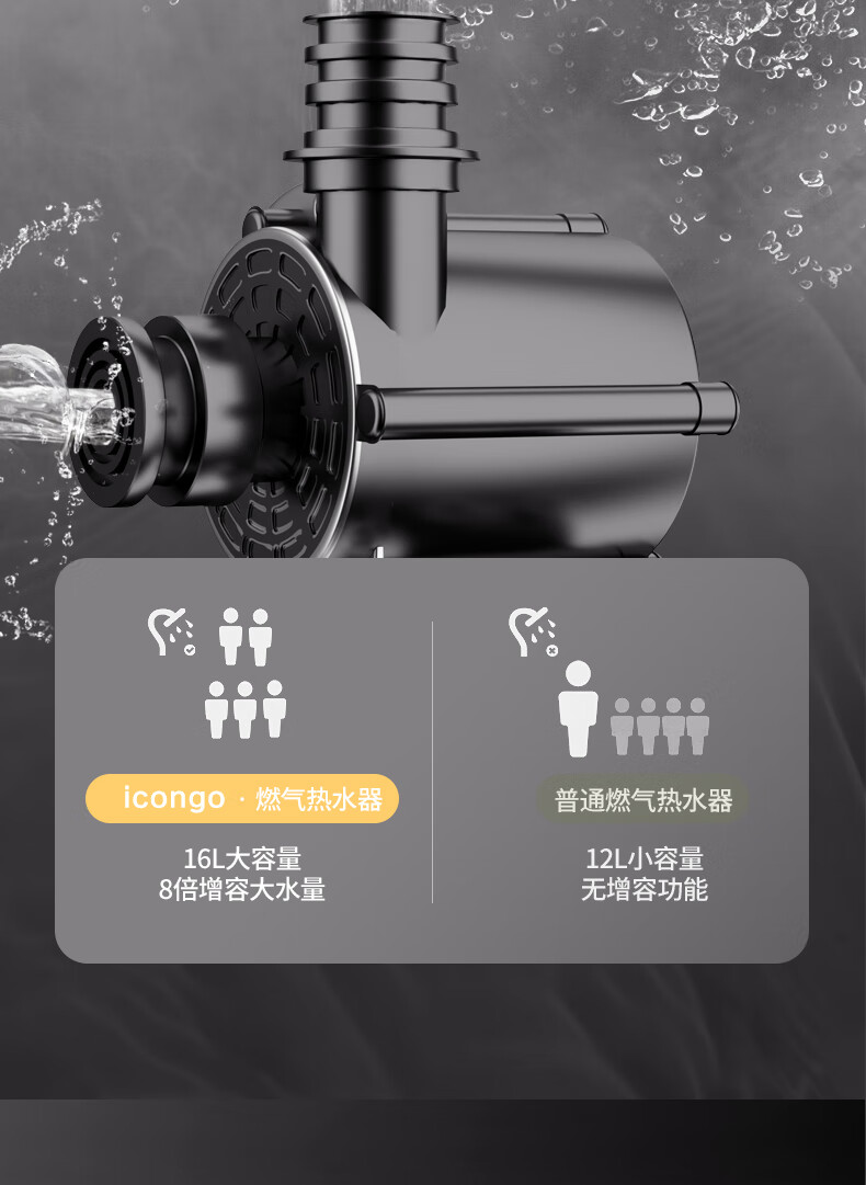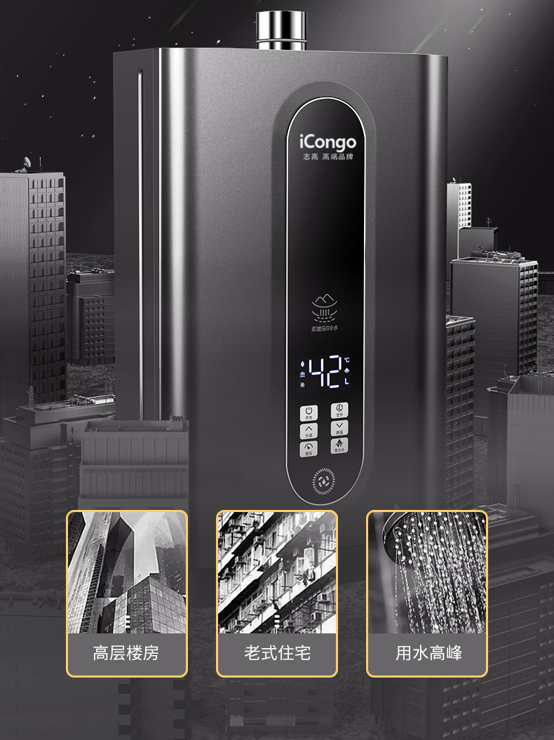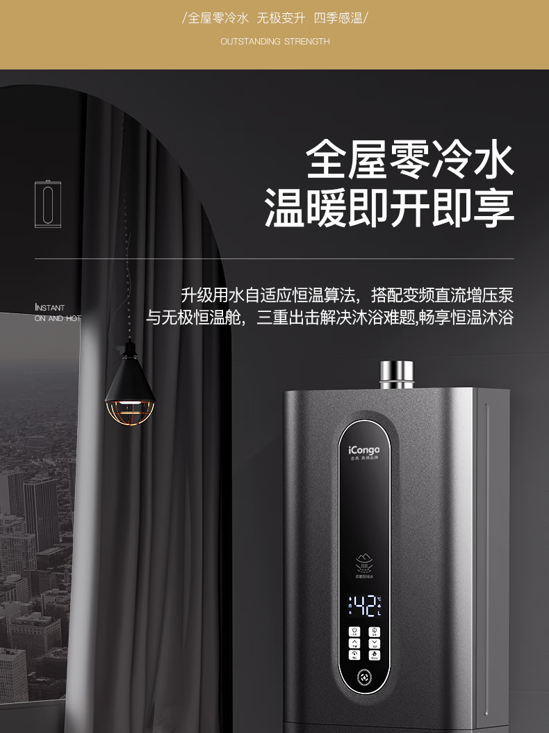 ICongo high-end brand free door-to-door installation gas water heater household water heater first-class silent zero cold water constant temperature forced exhaust type 16 liters 16L first-class silent large screen constant temperature + one kitchen and two bathrooms + free installation natural gas (12T)