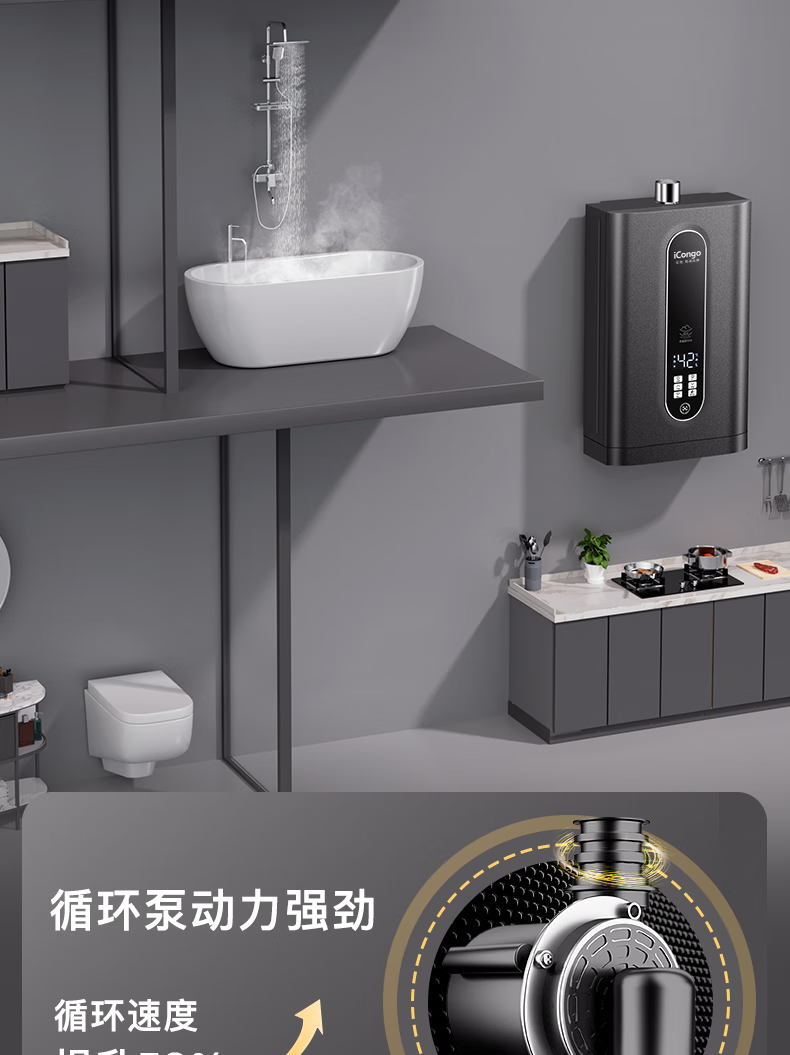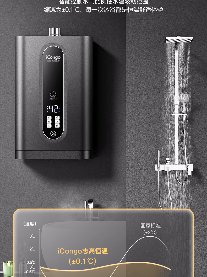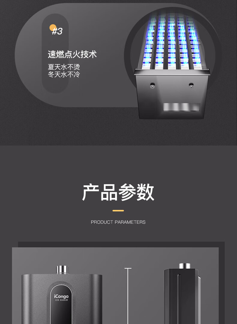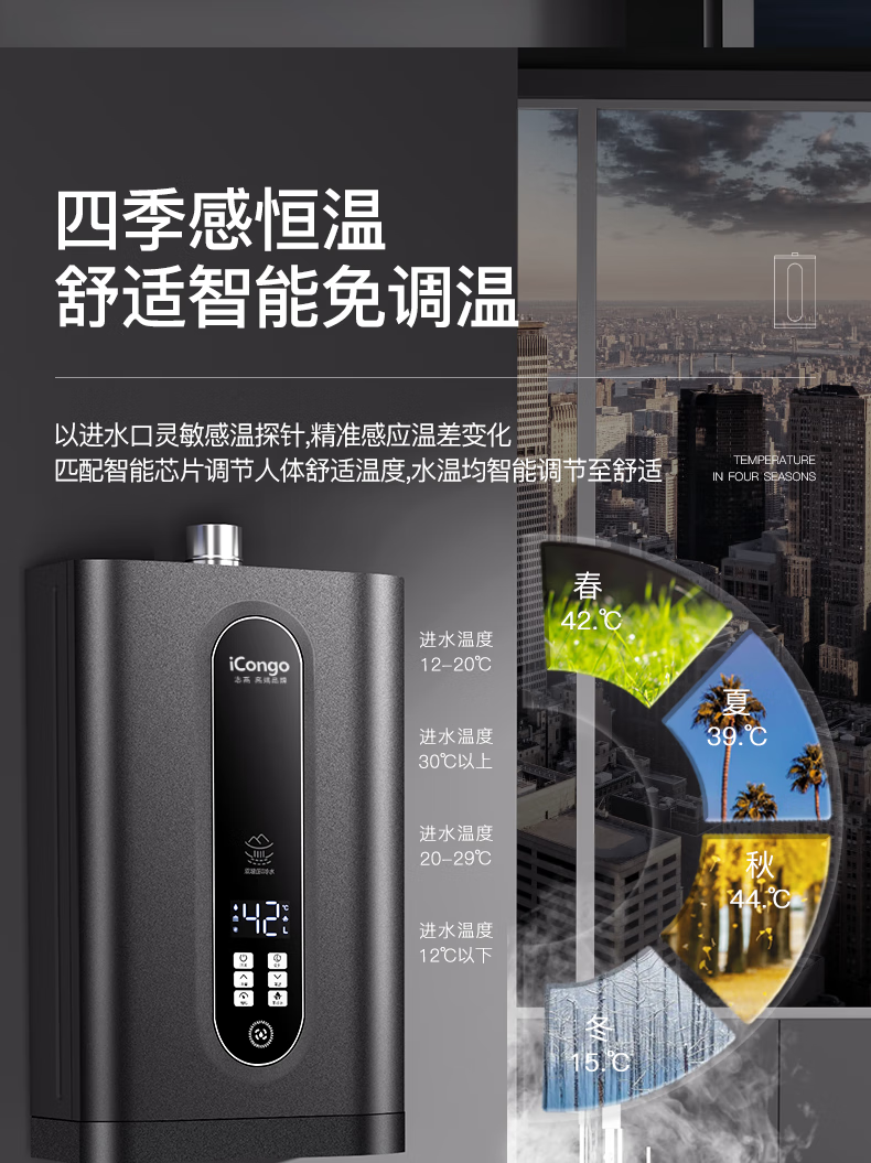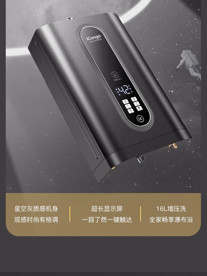 ICongo high-end brand free door-to-door installation gas water heater household water heater first-class silent zero cold water constant temperature forced exhaust type 16 liters 16L first-class silent large screen constant temperature + one kitchen and two bathrooms + free installation natural gas (12T)