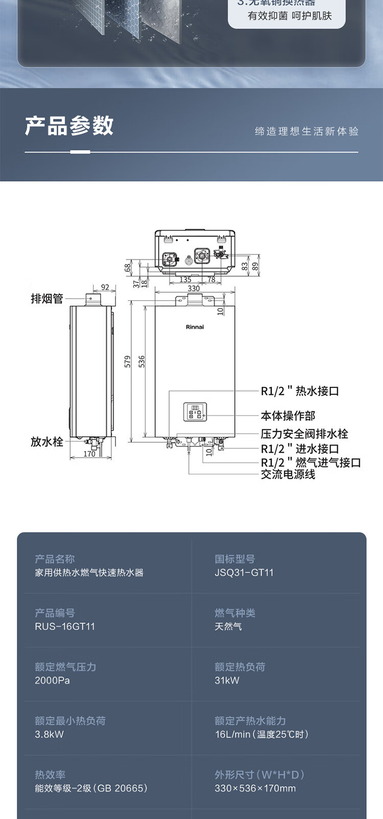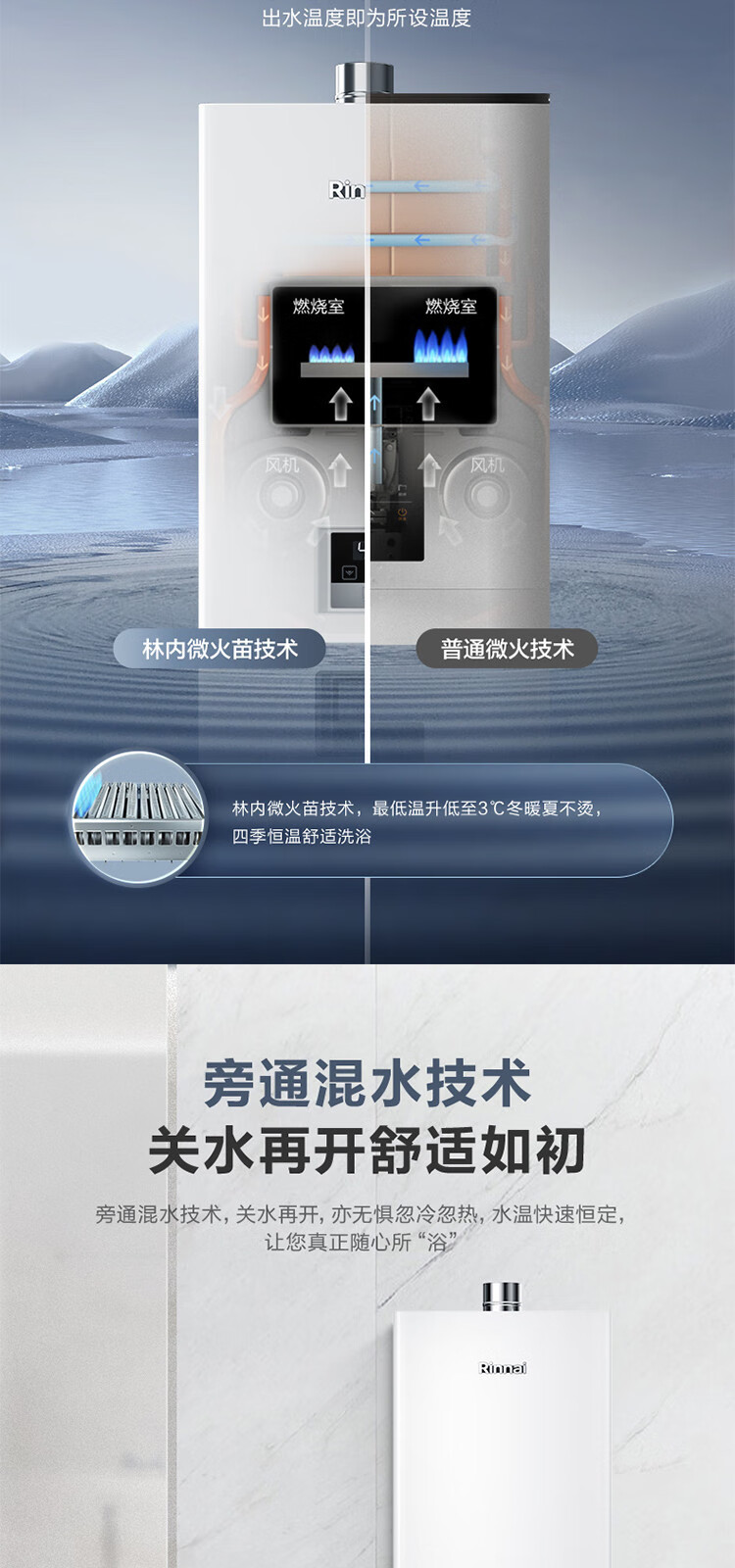 Rinnai Xiaomanyao Smart Constant Temperature Gas Water Heater GT11/PB2//PB4/GC22 Forced Discharge Energy Saving Newly Upgraded CPU Home Indoor Official Safety Nationwide Warranty 16L Popular Xiaomanyao RUS-16E32G-PB4 Natural Gas