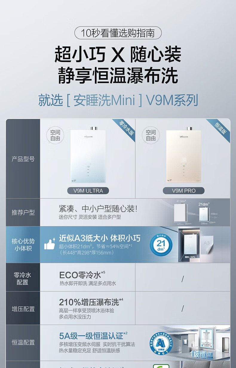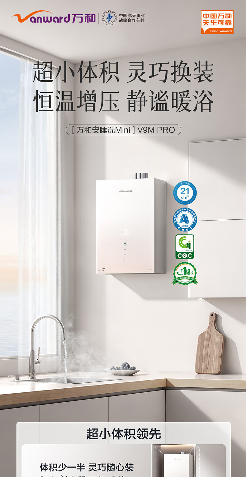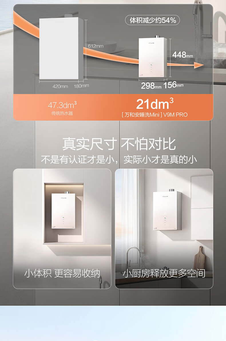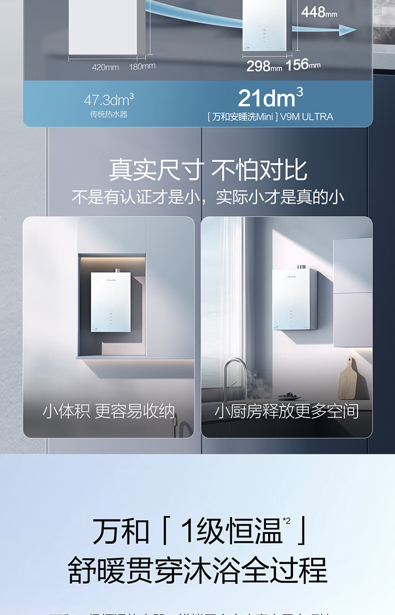 Wanhe Ansuiwash MINI V9M series small volume casual installation first-class constant temperature first-class energy-saving first-class silent household natural gas water heater gas approximate A3 paper size 16L MINI small volume zero cold water version
